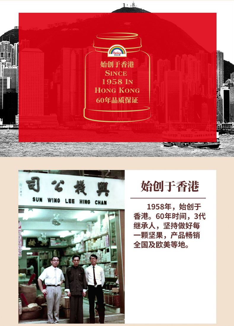 天虹是佛山南兴果仁制品有限公司旗下品牌,最早可追溯于1958年,南兴果仁是一家中外合资企业,年产10万多吨,是我国珠三角地区非常有名的坚果企业。