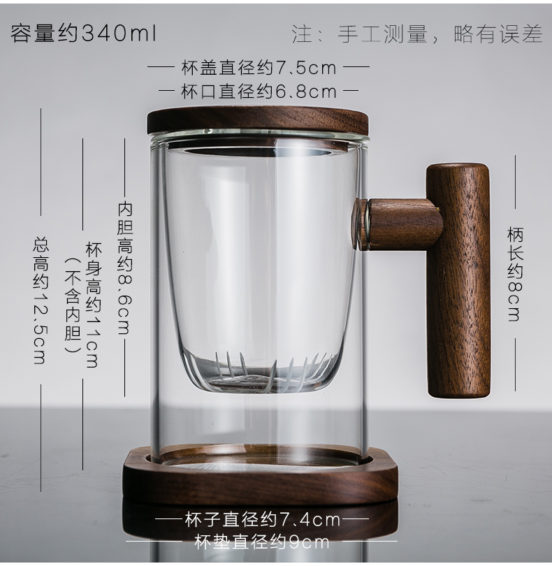 胡桃木制 玻璃杯身 可拆杯底 茶之玩物。