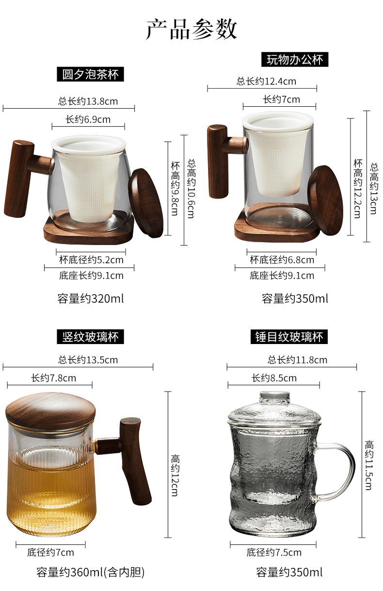 第四款此价,另多款可选,价格各有不同。2019年茶博会获奖品牌,竖纹胡桃木把玻璃泡茶杯,耐热玻璃,立体感强烈,木把防烫,多样式可选。4.9分好评,看网友晒单,品质不错。