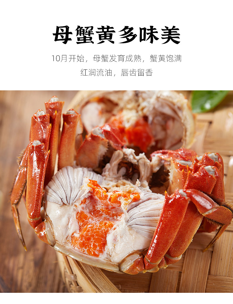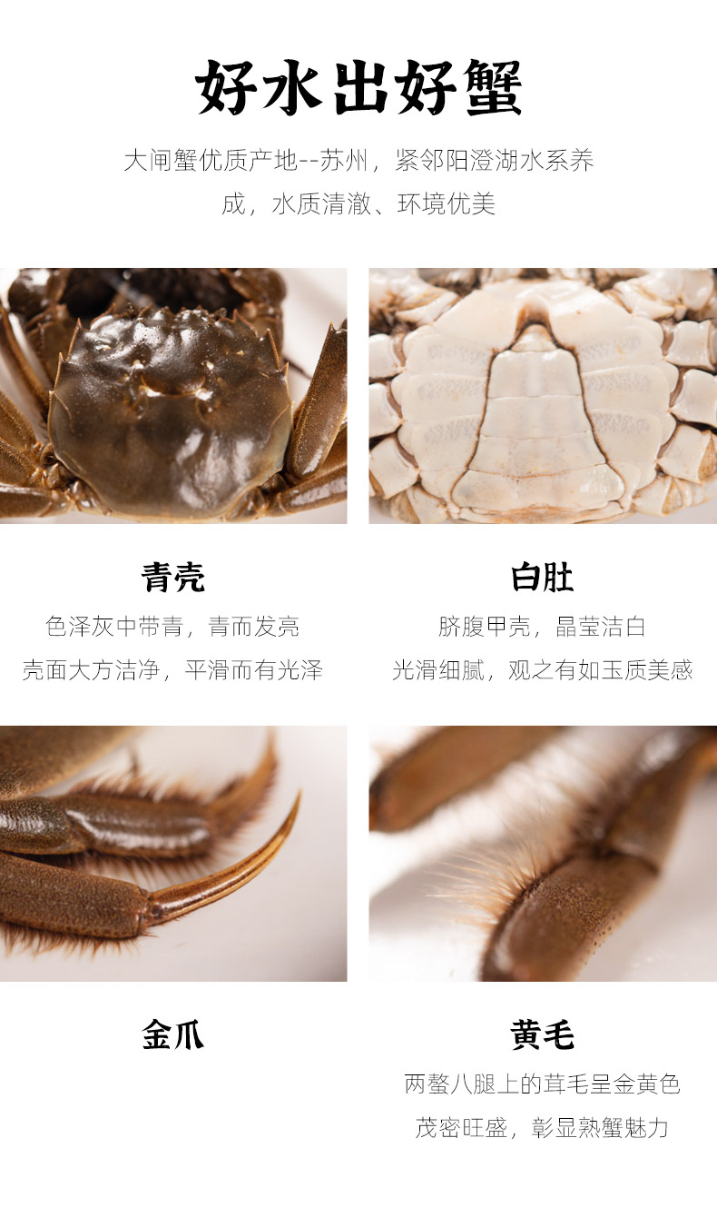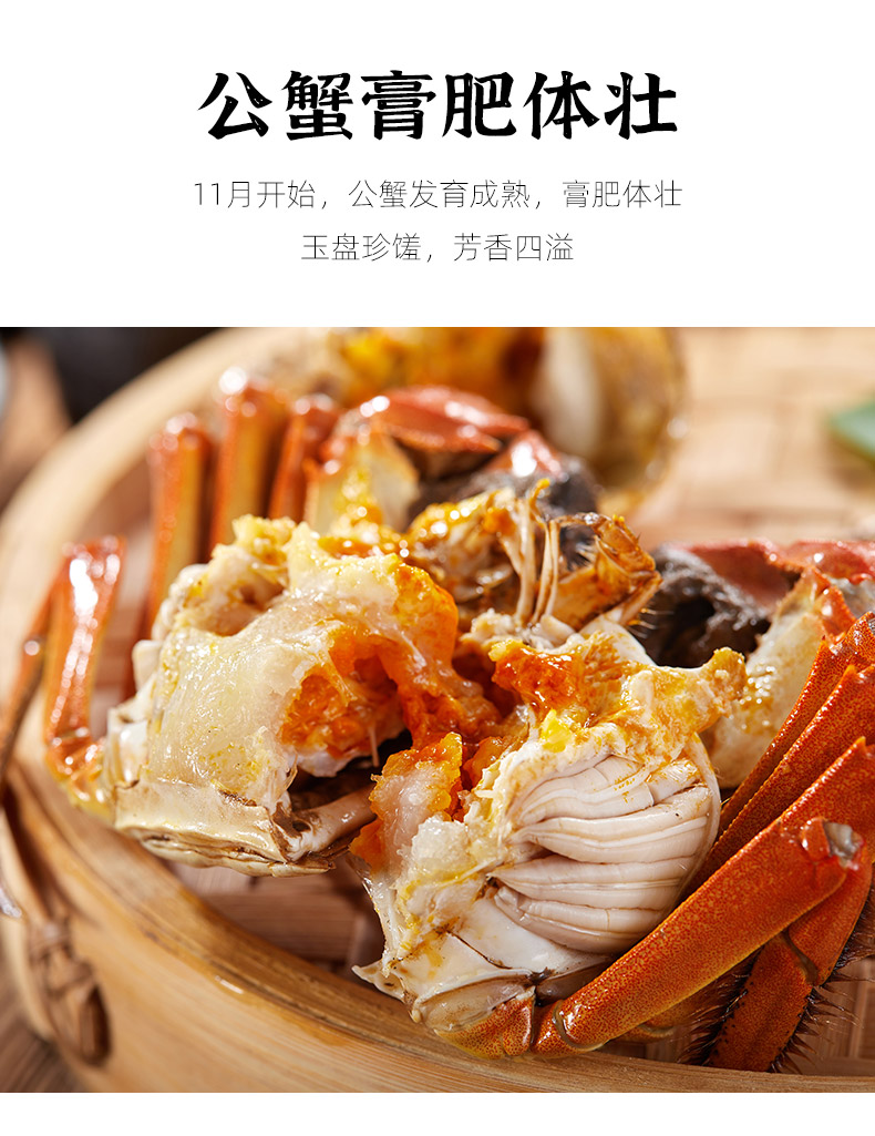 大闸蟹,个大体重,青背白肚,金爪黄毛,蟹黄肥厚,肉质白嫩,滋味鲜美而享誉海内外。螃蟹具有舒筋益气、理胃消食、通经络,还有一定的药用价值,活血化瘀、消肿止痛、强筋健骨的功效,民间常用于治疗跌打损伤、活血化瘀、筋骨破碎等疾病。