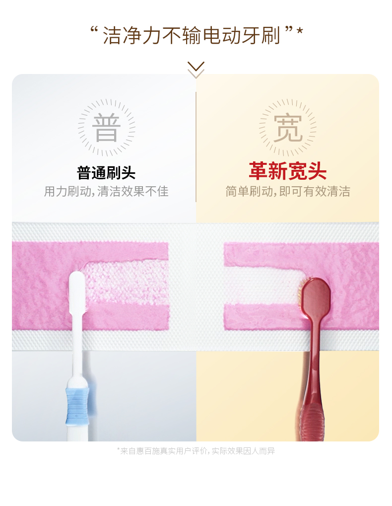 惠百施65孔宽头牙刷 – 升级宽头设计,高效除垢;三重植毛,全方位满足洁齿护齿需求。