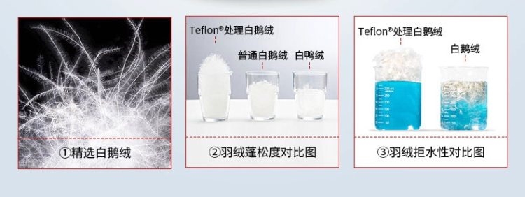 拒水羽绒是未来中高端羽绒制品的趋势,经过杜邦特氟龙处理的羽绒具有疏水性,不易被打湿。在潮湿环境下连续多天穿越,不能晒衣服的情况下,拒水羽绒受潮影响更小,可以保持比普通羽绒更高的蓬松度。即使衣物被打湿,拒水羽绒也不容易湿成一团,拒绝失温,保护生命!