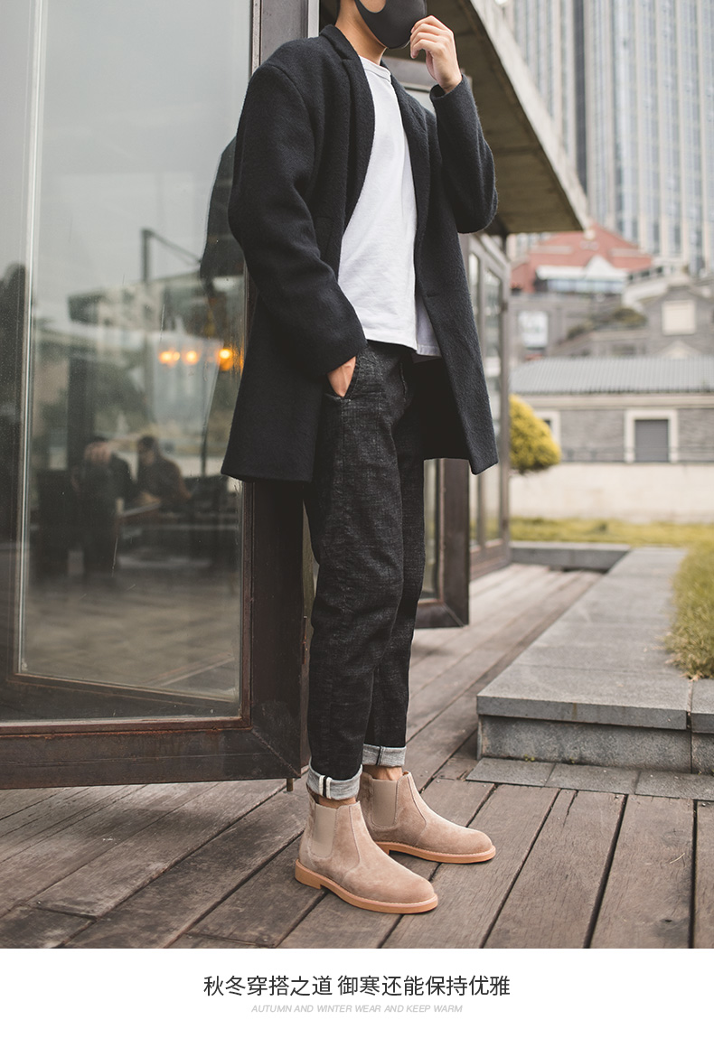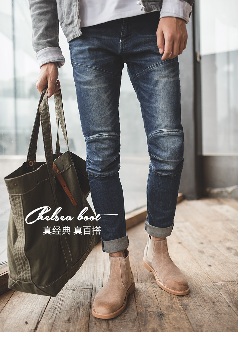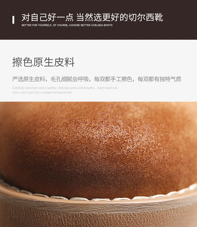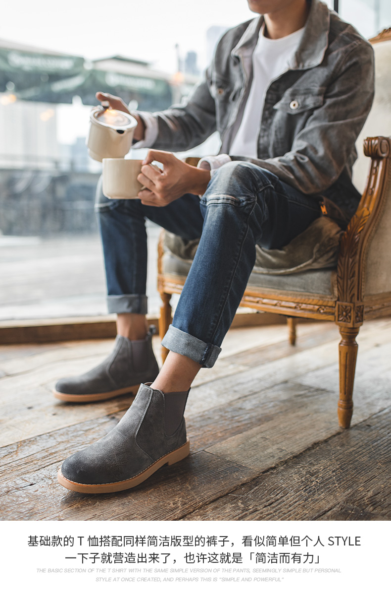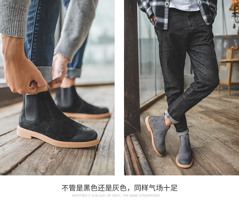 鞋底为高分子聚合橡胶大底,也就是咱们俗称的牛筋底,具有高密度、耐磨、柔软舒适的特点,侧面松紧带设计,省去了系带的麻烦,而且独特的鞋型使切尔西靴上脚特别酷,自带男人味,既可搭配牛仔裤、休闲裤,也可作为正装的配鞋。
