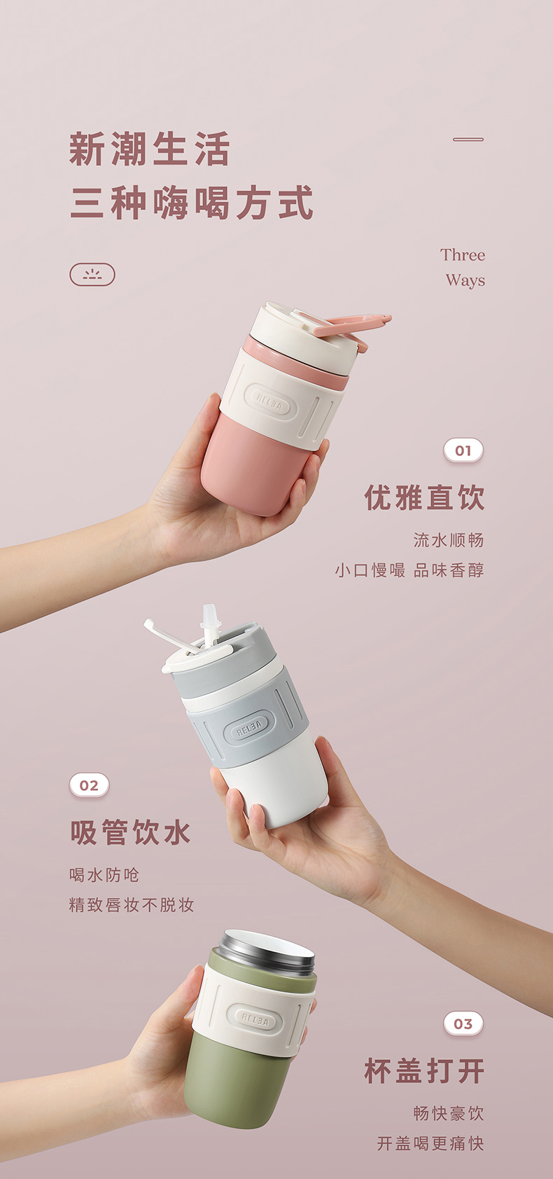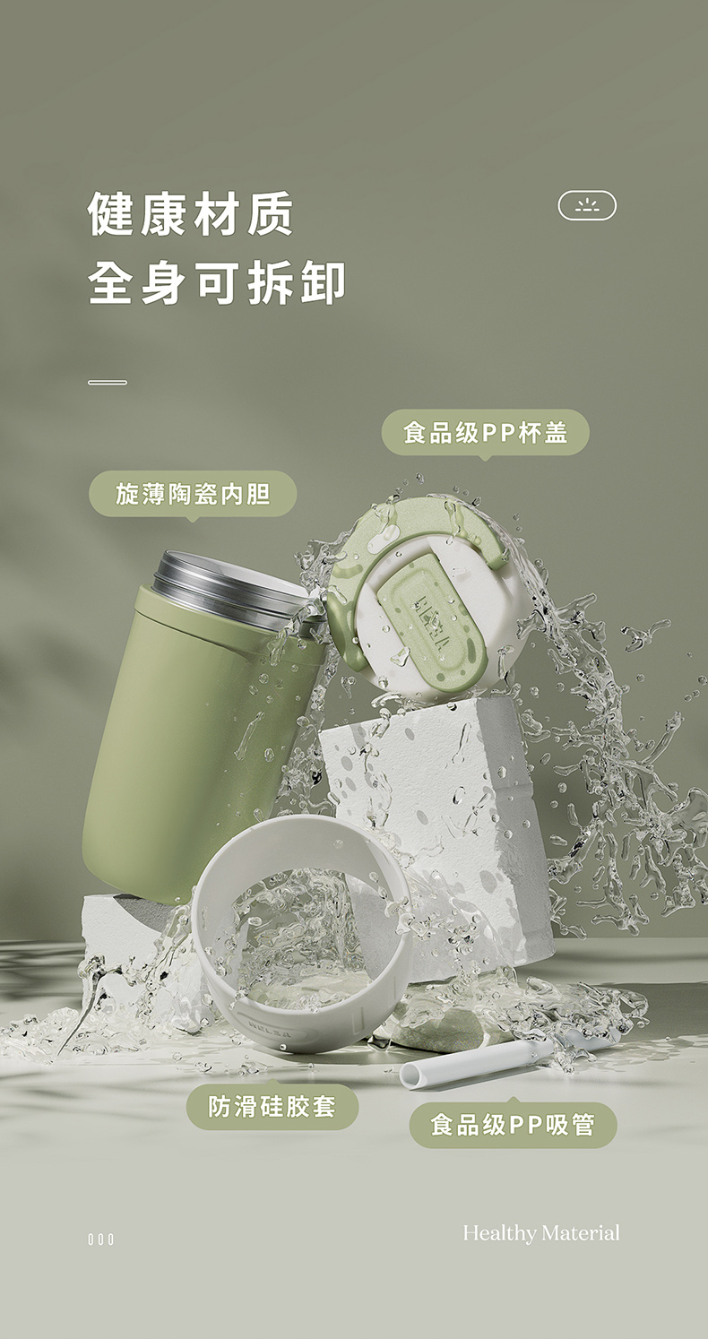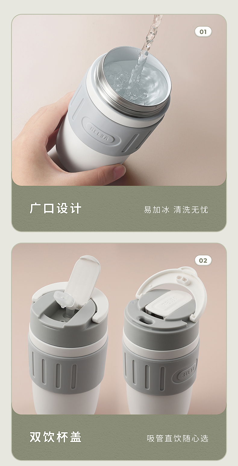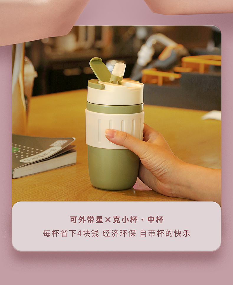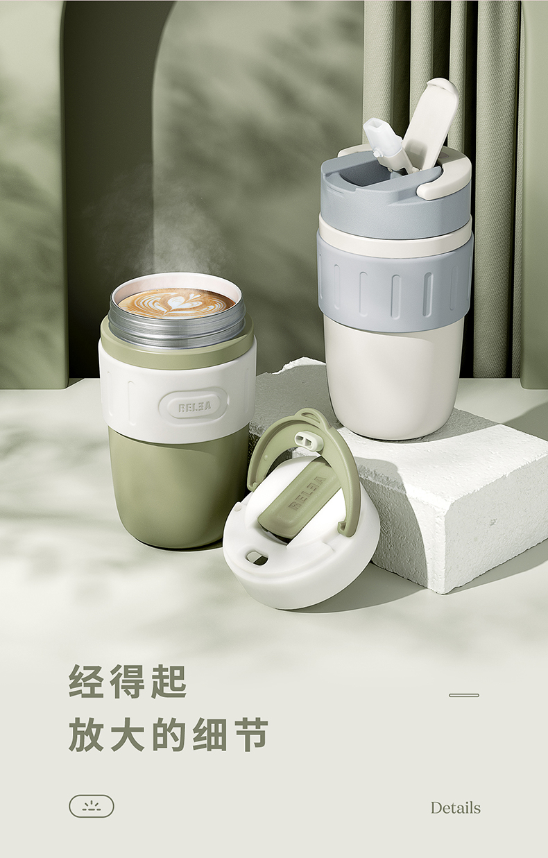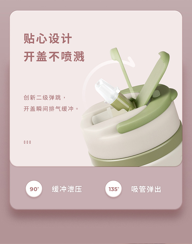 细节上:杯身外层304不锈钢结实耐用,耐磨烤漆,美观时尚,搭配防滑硅胶圈,提升颜值握感舒适,一杯盖2用,可直饮、可吸管饮水,喝水防呛不脱妆,吸管创新二级弹跳设计,开盖瞬间排气缓冲泄压,不喷溅,杯底防滑硅胶垫,放置平稳不易滑到。