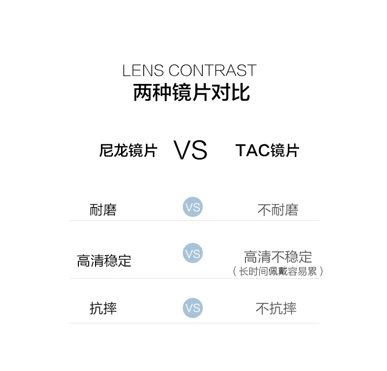 镜架采用304H不锈钢材质,具有优秀的抗汗腐蚀性、耐高温性和抗拉性,且硬度高、重量轻;尼龙偏光镜片,清晰度高,能真实高还原色彩,还能有效防紫外线、防眩光,减少视觉疲劳度,钓鱼、开车、时尚搭配都没问题。