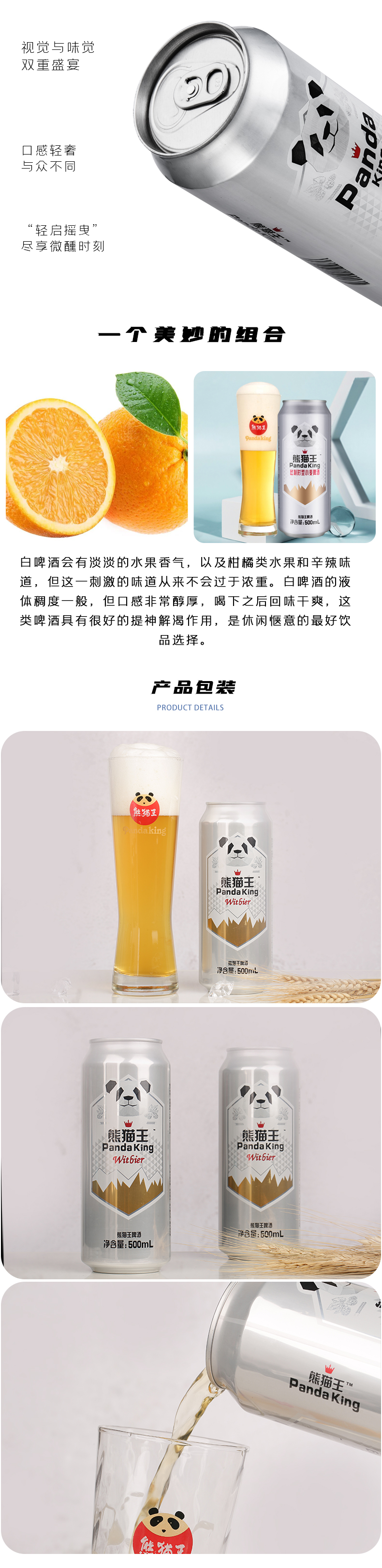 总部位于香港的老猫酒业(上海)有限公司本着"世界的熊猫,中国的骄傲"的精神,让"熊猫王"品牌回归市场。严格遵循1516年德国颁布的《啤酒纯酿法令》、采用国内最尖端的酿造技术、严选原材料。用百分之百的精选麦芽和颗粒酒花,不加任何辅料精酿而成。