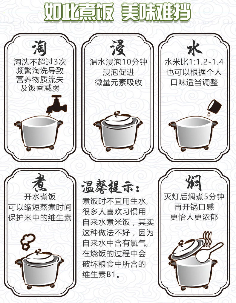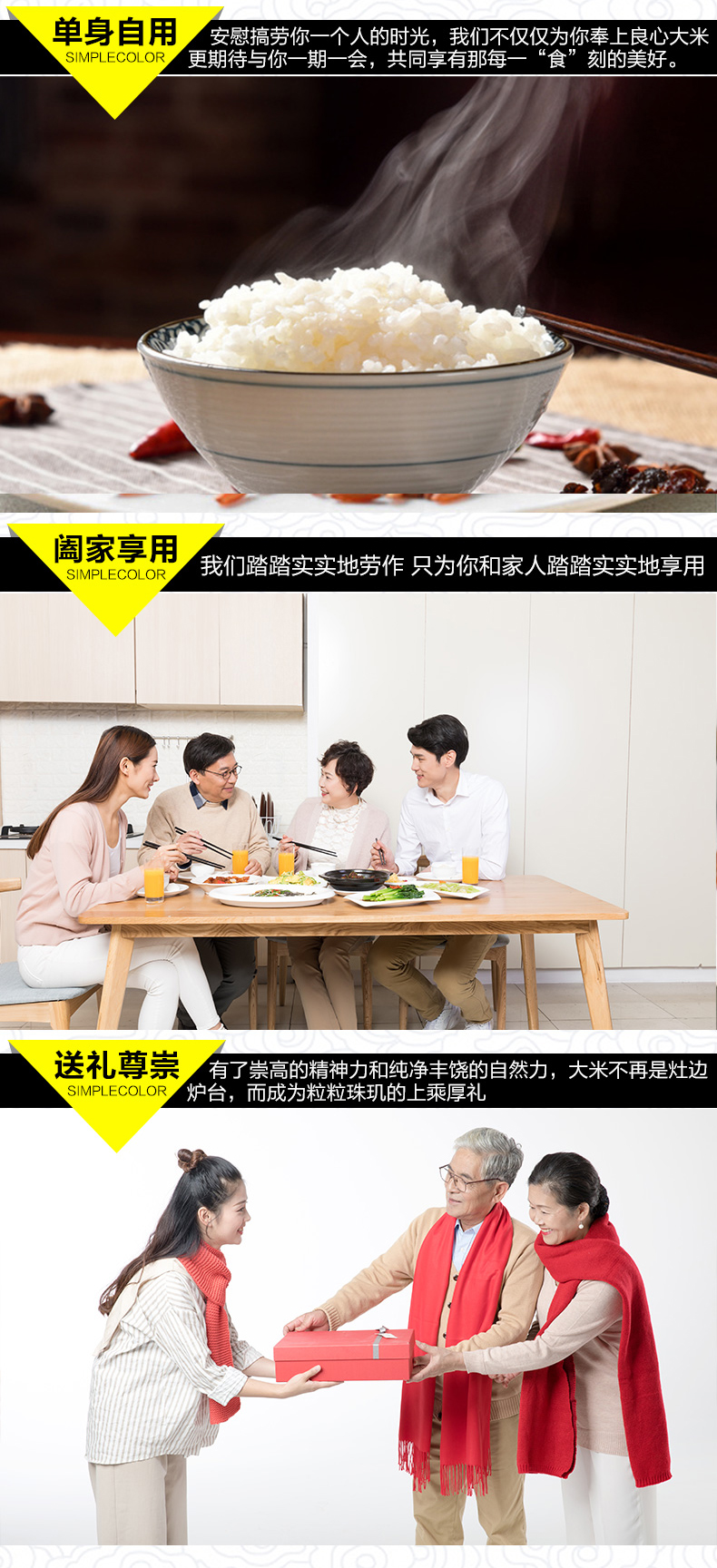 五常大米色泽光亮,醇厚绵长,饭香四溢。做好的大米饭口感极佳,食味清淡略甜,绵软略粘,芳香爽口。饭粒表面油光艳丽,剩饭不回生,是追求生活品质的人们米饭的首选。适合所有人群,尤其适合肾脏和肠胃比较娇弱的老人孩子长期食用。