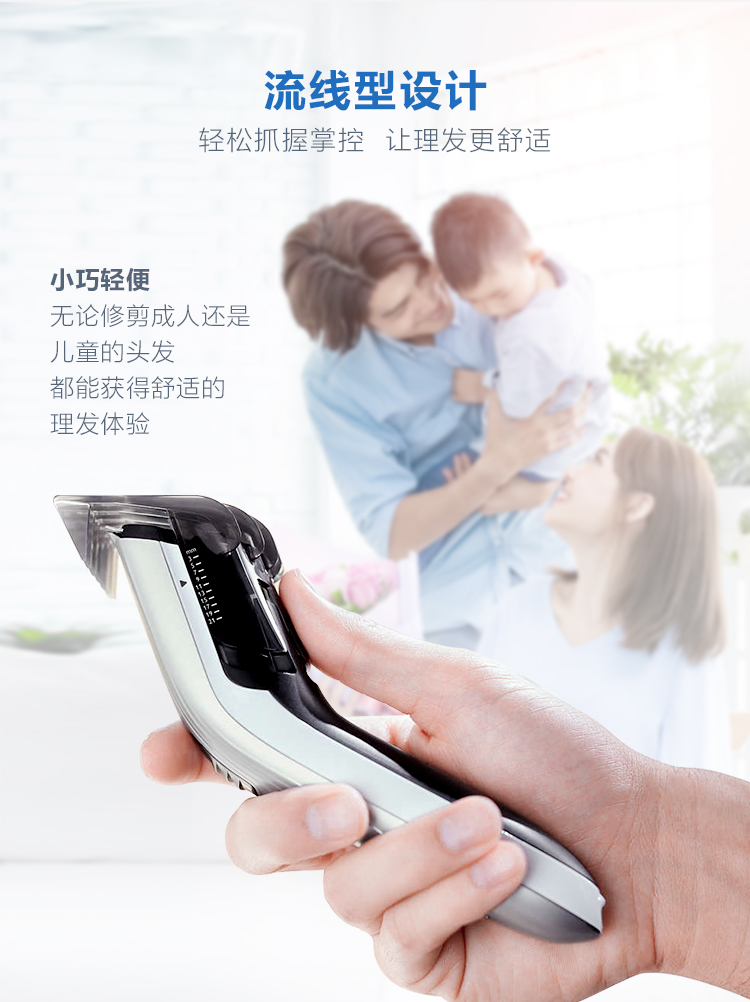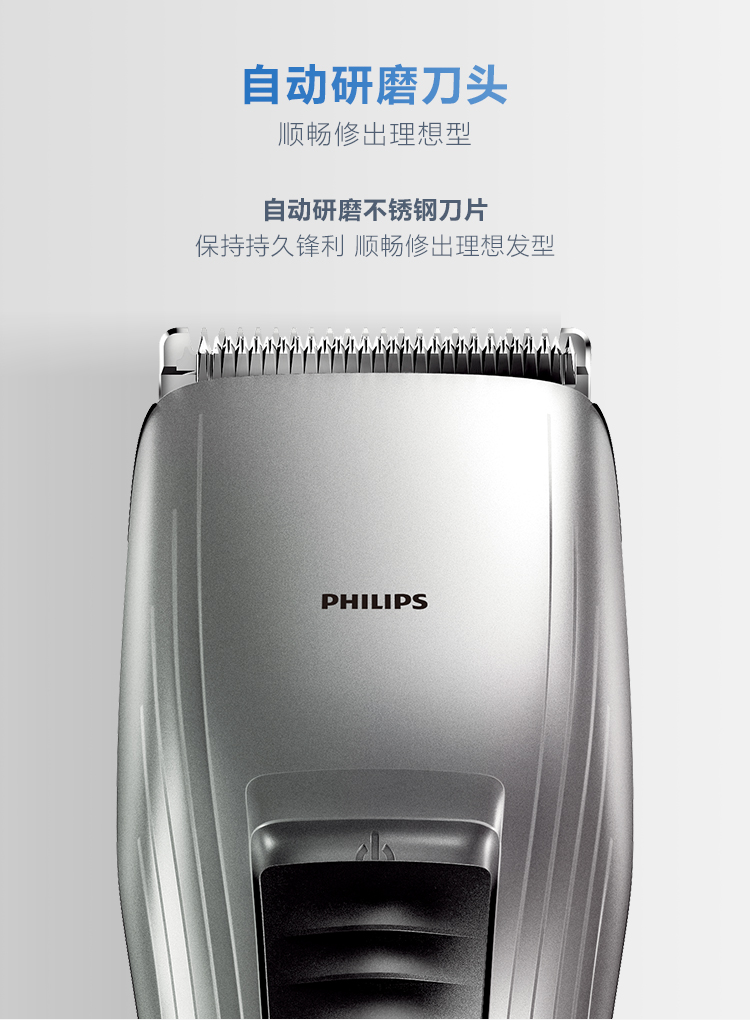 圆形自磨刀片无需上油和日常维护就可以保持长久锋利,顺发梳可防止拉扯皮肤,即使给孩子理发也不用担心损伤到稚嫩肌肤,可以在1–21mm间设定10种长度,精度为2mm,内置充电电池可连续理发35分钟,也可以直接接驳电源理发,电源为100-240V全球自适应电压。