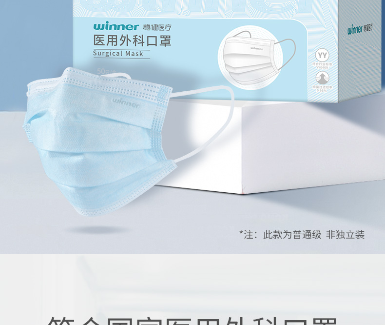 这款winner 稳健 一次性防护口罩,规格: 50只,符合YY0469-2011行业标准,采用优质无纺布表层,过滤布夹层,舒适透气;3层褶皱式面罩设计,根据脸型调节大小,内置铝塑条鼻梁夹,弯曲有度,敷贴鼻梁;高弹耳带,弹力加倍。