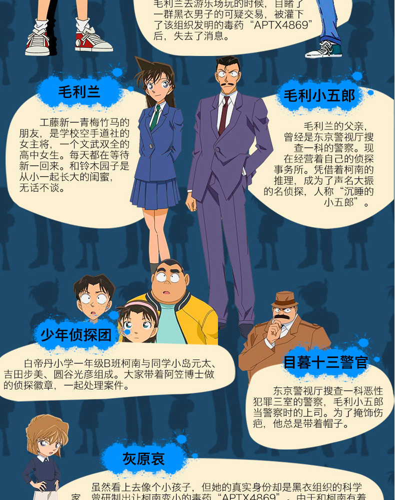 风靡全球的柯南动画,无论是从情节构思、人物的塑造还是案件整个的设计都富有推理的韵味。丰富多彩的人物,激荡热烈的情感,环环相扣的案件,细腻缜密的推理过程,大胆奇妙的思路创新……这就是名侦探柯南!让我们跟随着名侦探柯南一起去体验一场头脑风暴吧!