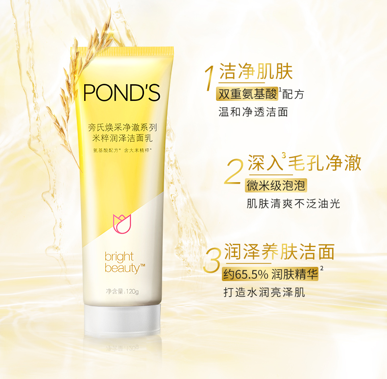 天猫超市,10月1日~7日 国庆狂欢季,¥0元 国庆狂欢价,-2元优惠券,-16元 下单返猫超卡,=28元 到手价;规格为120g*2支,下单还赠30g。这款旁氏POND'S米粹润泽洁面乳,属于焕采净澈系列,双重氨基酸配方,能深度温和清洁面部,所含65.5%米粹润肤精华,能很好的水润亮肤。
