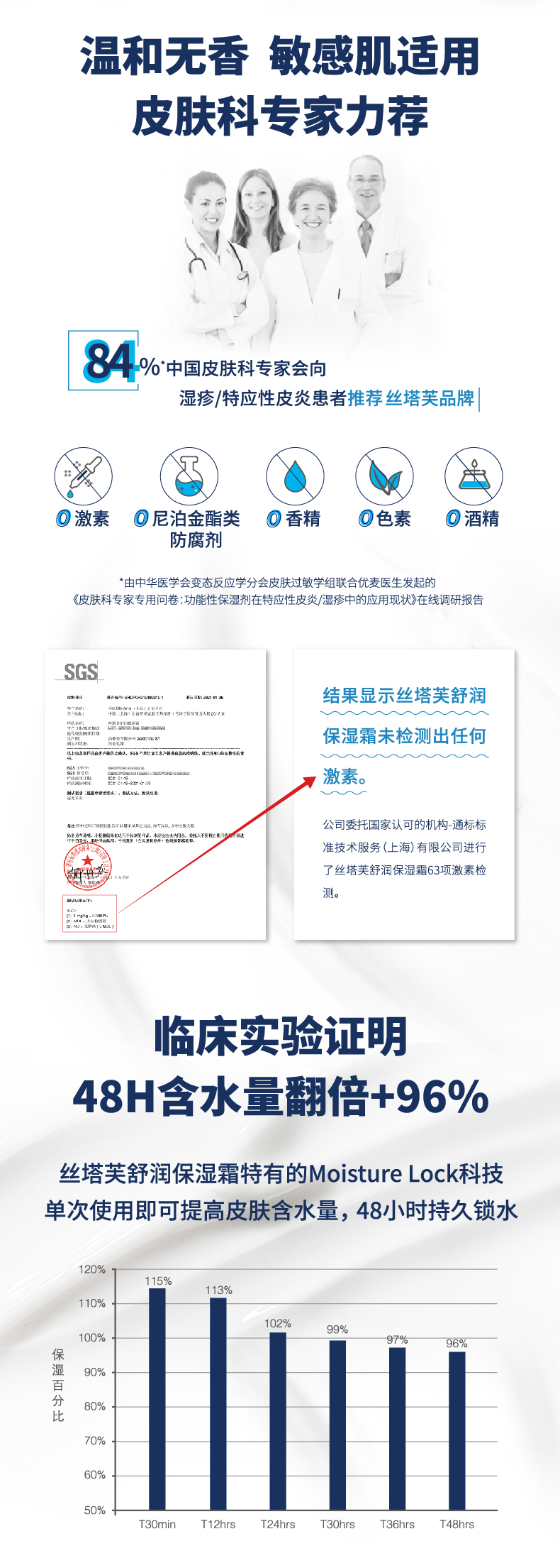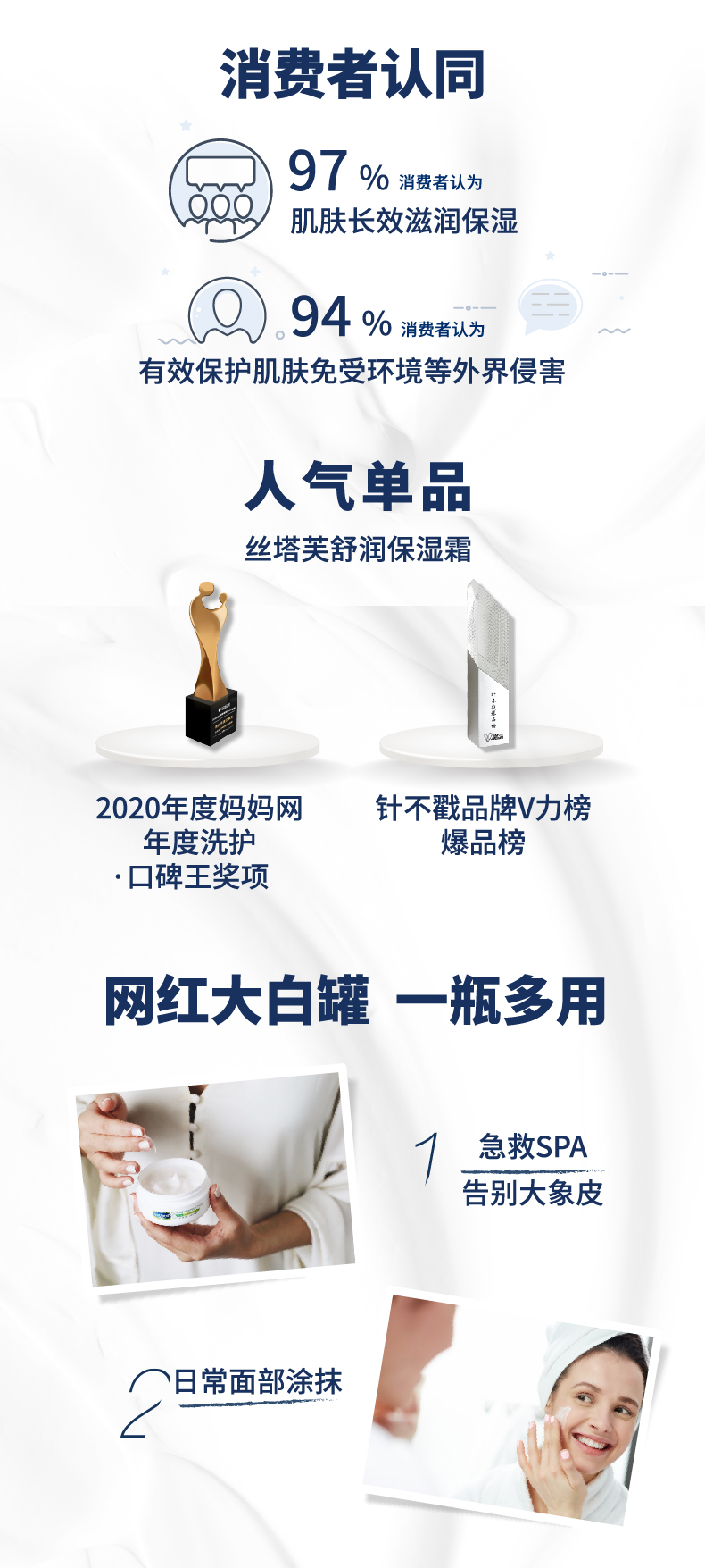 富含强效而温和的水合因子,保湿效果迅速而持久,保持肌肤持久润泽。质地非常温和,无刺激,用后皮肤柔软而富有弹性,无香。