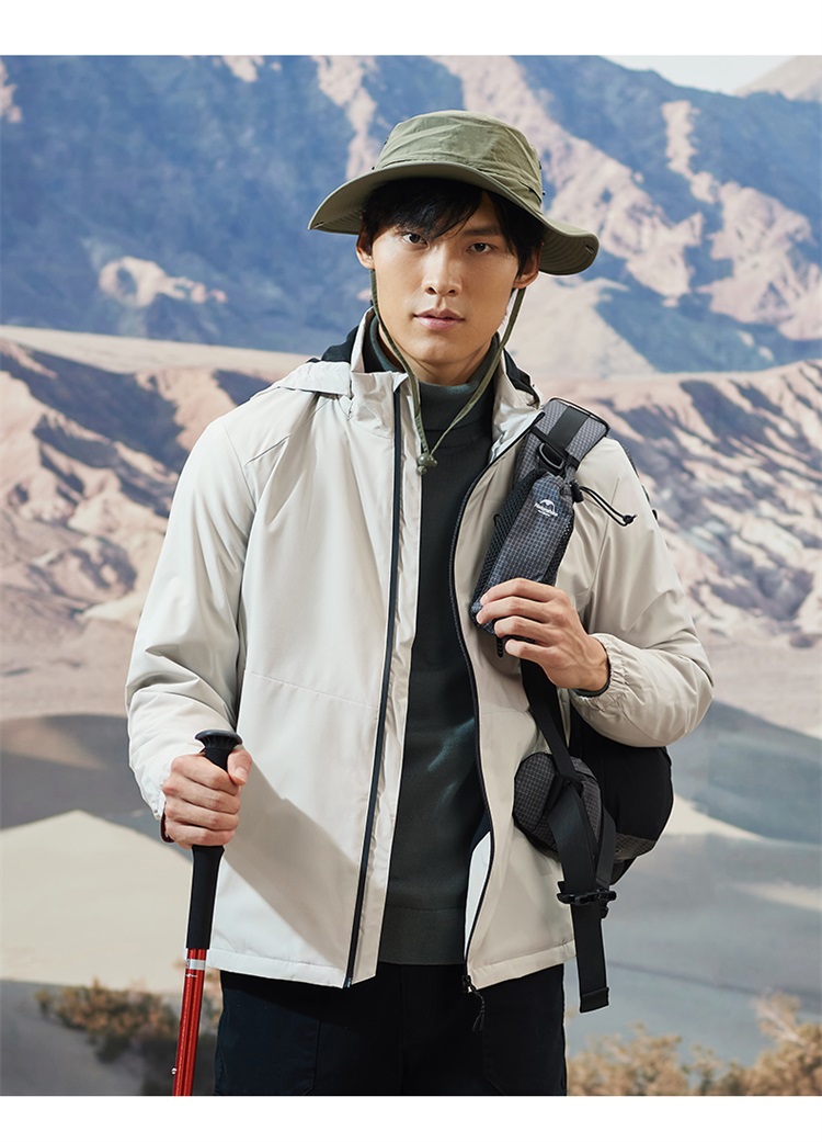 这种防风保暖夹克,中等厚度,本质就是将风衣和抓绒衣做成一体,重量轻便,轻暖比高,适合天气还没那么冷,不需要穿羽绒服的时候穿着。
