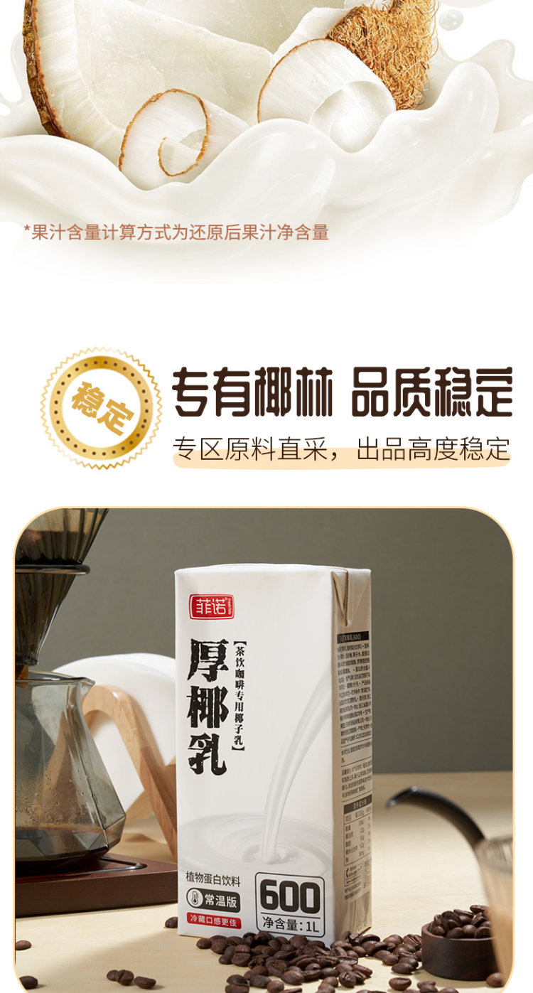 天猫菲诺食品旗舰店39元,可领16元优惠券,实付23元到手,是正价58元的4折;1比1复刻生椰拿铁,菲诺椰浆厚椰乳,椰汁烘焙原料,奶茶店专用、烘焙原料、水果捞甜品制作,七天无理由退换。领券链接点此