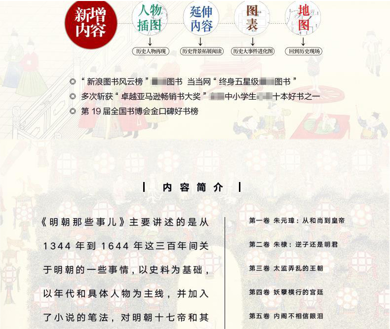 天猫超市,10月1日~7日 国庆狂欢季,¥148.5元 国庆狂欢价,-10元优惠券,=138.5元 到手价,天猫超市出品,正版保障,原作全新修订增补版,近十年来最畅销图书,多年来被众多人强烈推荐,口碑很好的书籍。作者以明朝史料为基础,加入小说笔法,以幽默通俗的手法,生动展示了明朝1344-1644这三百年的人和事。