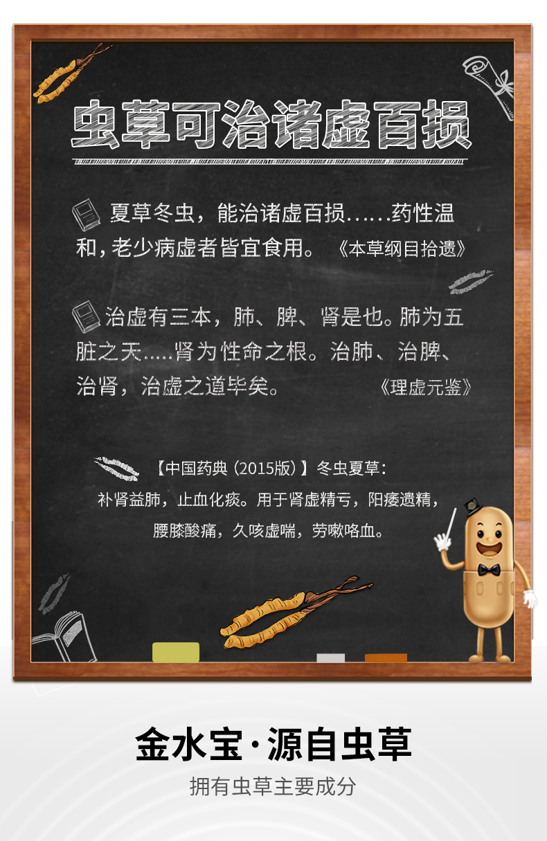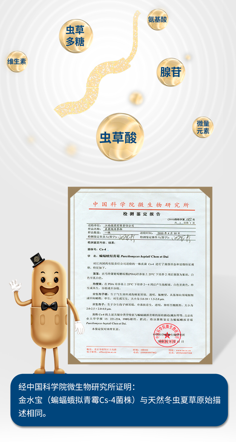 金水宝是完完全全的中成药,核心的成分是人工培育的虫草花,可以阴阳双补,也就不用再担心吃六味地黄丸加重自己肾阳虚的症状了,而且因为金水宝有一定的促性腺功能,很多群友吃后也说欲望增强了。