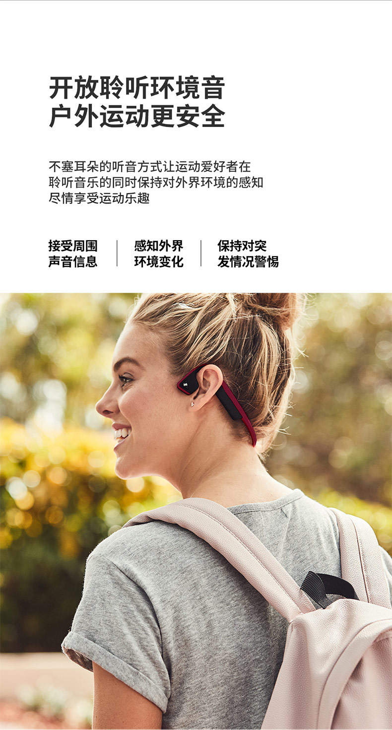 1 安全不入耳,随时听到外界声音,出行、户外、运动更加安全。