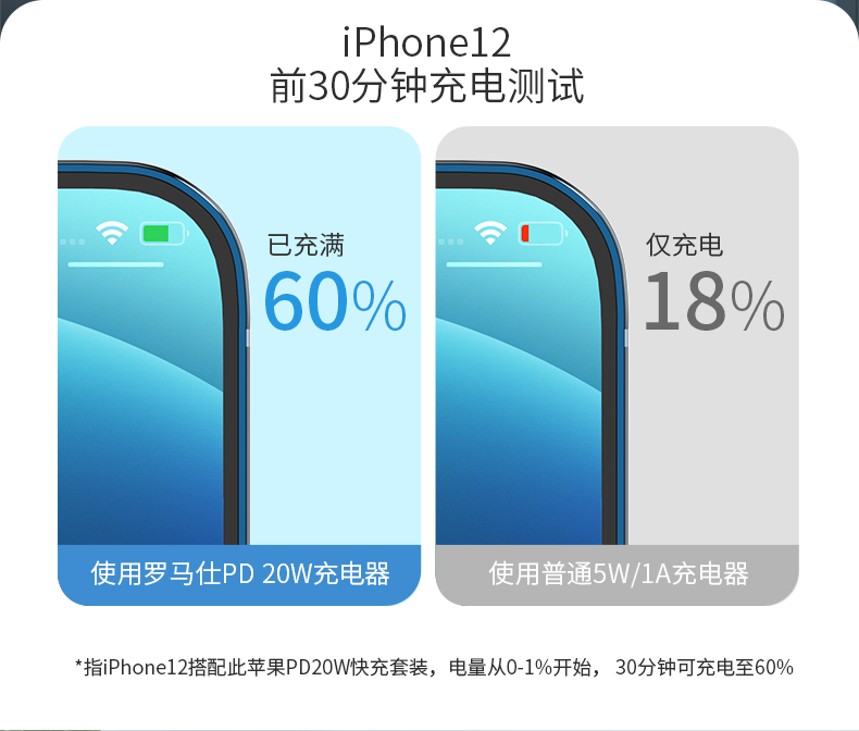 20W苹果PD快充 30分钟充满50% 苹果专用。