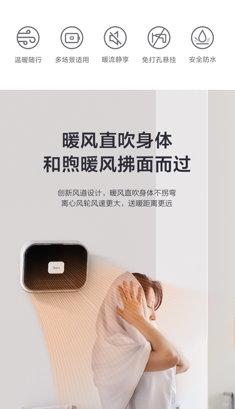 PTC陶瓷发热 免打孔悬挂 防水速热。