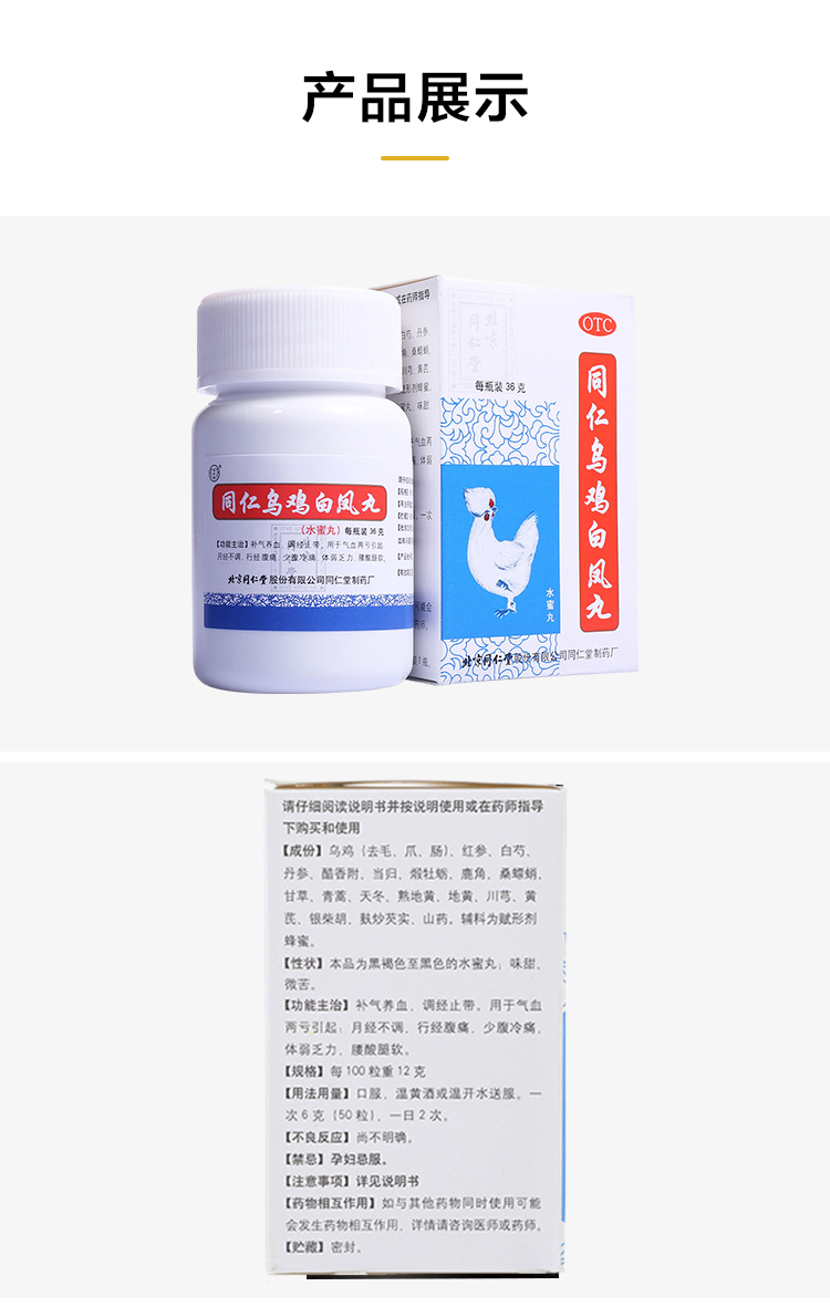这款同仁堂 乌鸡白凤丸,选用上等药材制成,包括青海虫草、吉林人参鹿茸、甘肃枸杞、山西党参、湖北茯苓、杭州白芍、云南文山三七,运用古法炮制而成,能有效补气养血,调经止带。