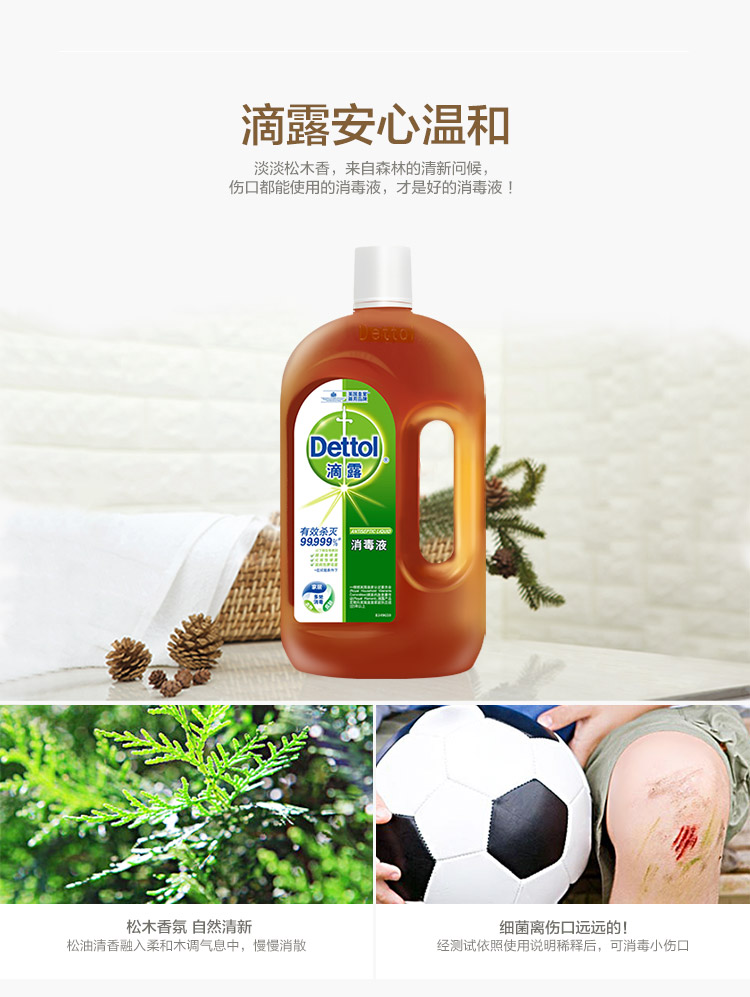 这款滴露 杀菌消毒液,主要有效成分是PCMX,可有效杀灭99.999%的大肠杆菌、金黄色葡萄球菌等细菌,含有清香松油,淡淡清香;可兑水用于伤口消毒,也可以用于地板消毒、衣物消毒、家居消毒等。