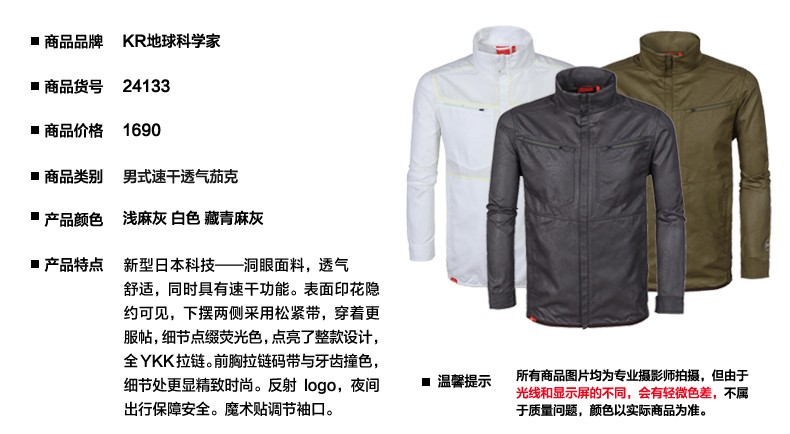 地球科学家“Kroceus”以前叫“科诺修斯”,是嘉麟杰运动的自有品牌,2014年改名为地球科学家,是为数不多使用高端面料的国内户外品牌,价格只是国际大牌的三分之一。因是做面料起家,地球科学家全线产品的面料都不错,抓绒、羊毛内衣、羽绒服是优势产品线。