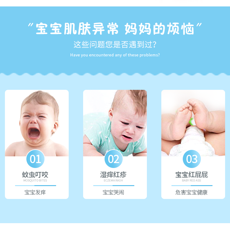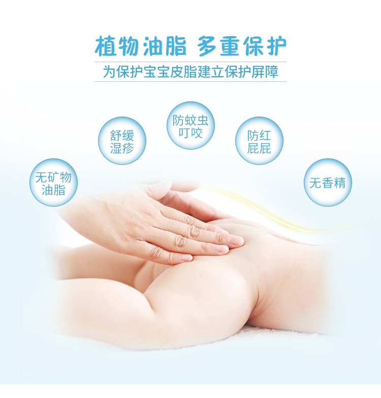 可以滋润与修复宝宝受损皮肤,舒缓宝宝皮肤因细菌感染的湿疹,因摩擦、烫、蚊虫叮咬和红屁屁以及腋窝、脖子皮肤等皮肤不适问题。无香精、矿物油脂,温和不刺激。规格50ml。