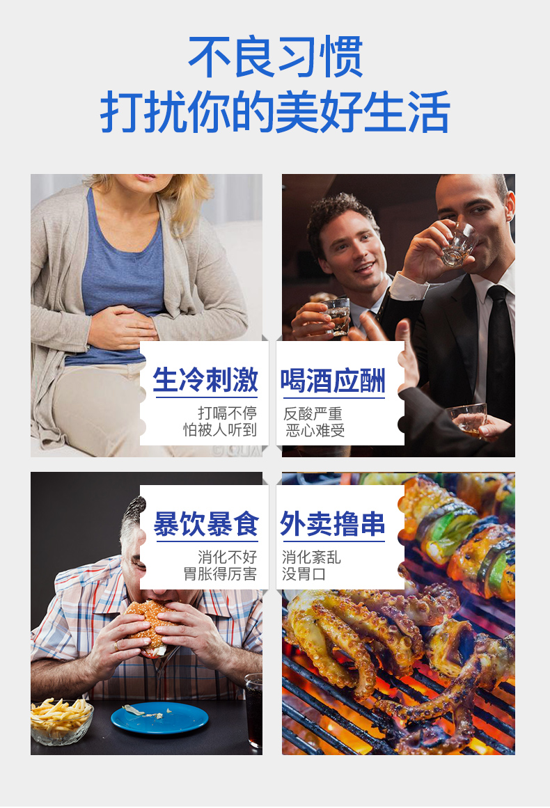 复合配方含有姜黄素、谷氨酰胺、槲皮素、芦荟、薄荷油、榆树、瓜尔豆胶、果胶、磷酸二钠、蜂蜜、10种有效成,协同作用效果更好。2000mg高含量谷氨酰胺+专利姜黄素(Cumerone) 配方比普通姜黄素提取高出多倍,更有效应对幽门螺杆菌,能帮助受损细胞修护胃黏膜。还特别添加天然蜂蜜,与肠胃系统营养物质相结合,更好地舒缓肠胃,减压肠胃消化负担。