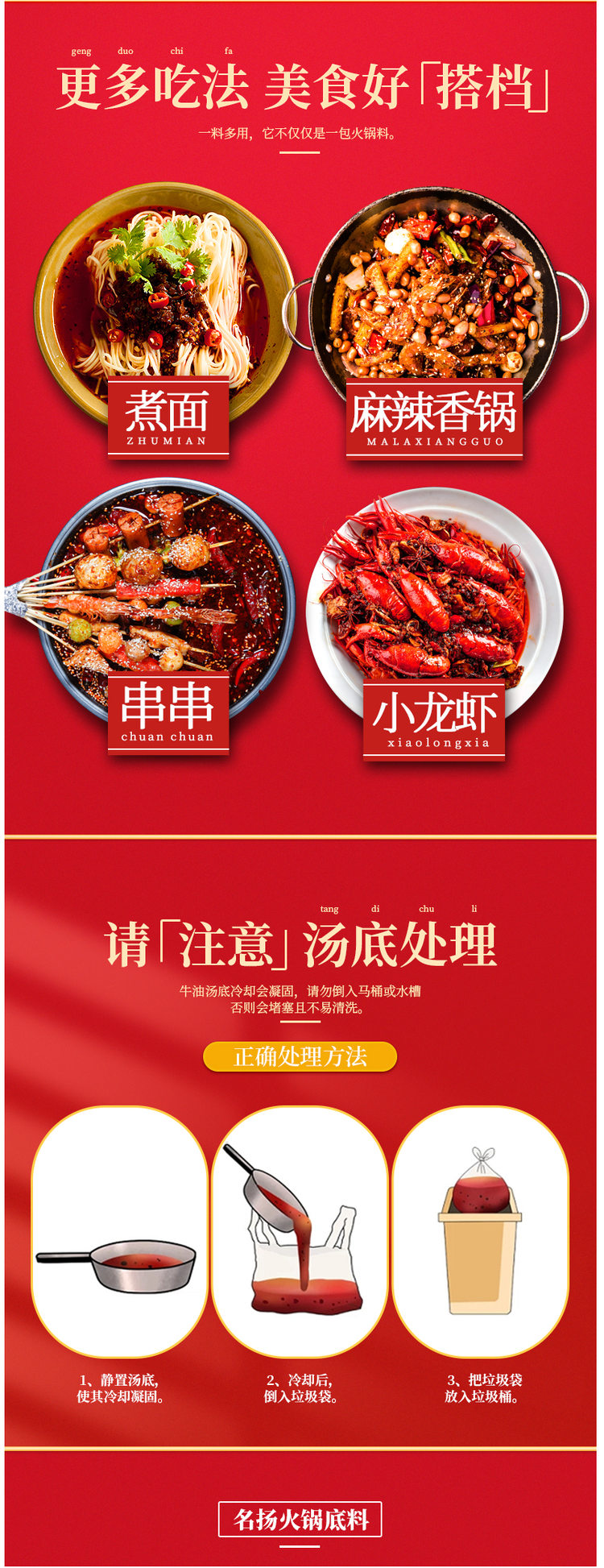 这款名扬 牛油火锅底料,选用上等牛油,辣椒、花椒和豆瓣等制成,特辣型,牛油色白润无杂质,口感醇厚,即使长时间熬制,也不起泡,浑浊,纯手工慢火熬制,香醇。