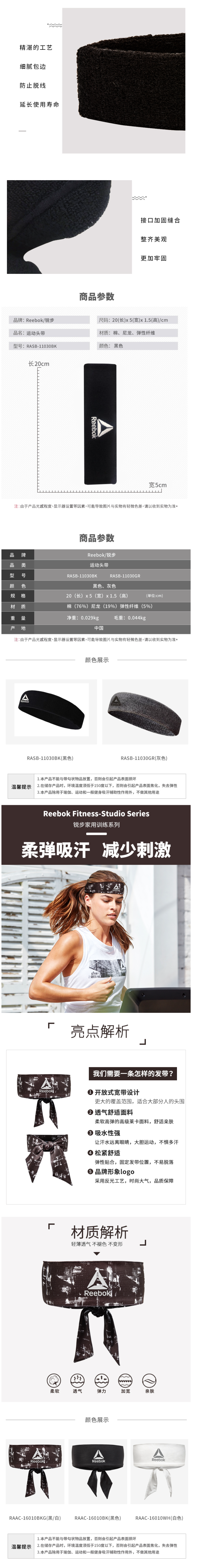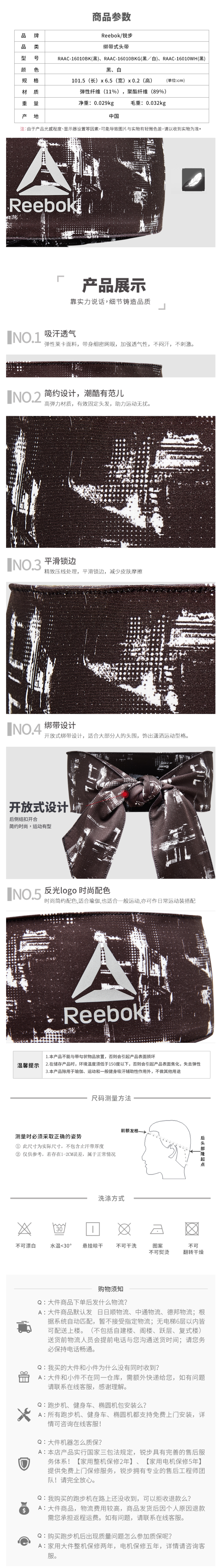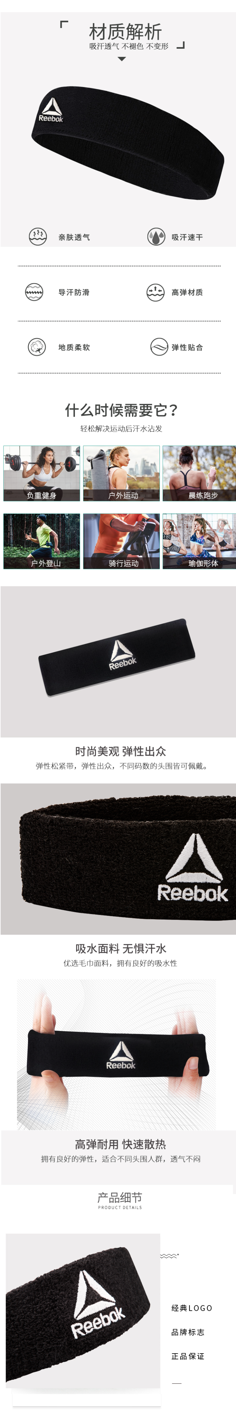 这款锐步Reebok 高弹透气运动止汗带,优选毛巾面料,拥有良好的吸水性,吸汗止汗还透气;同时还拥有良好的弹性,能快速散热透气不闷,不易变形,适合不同头围人群。