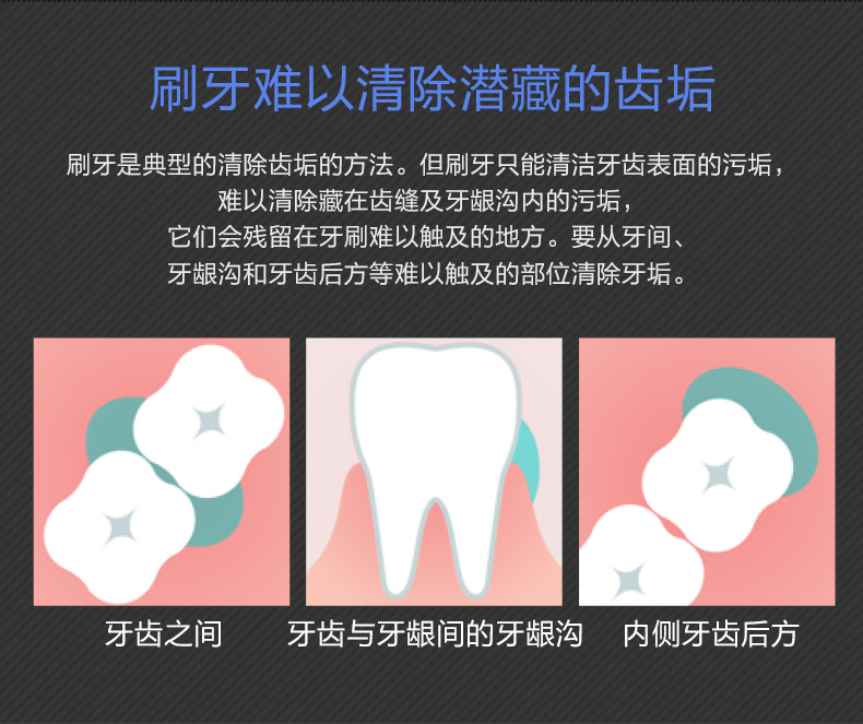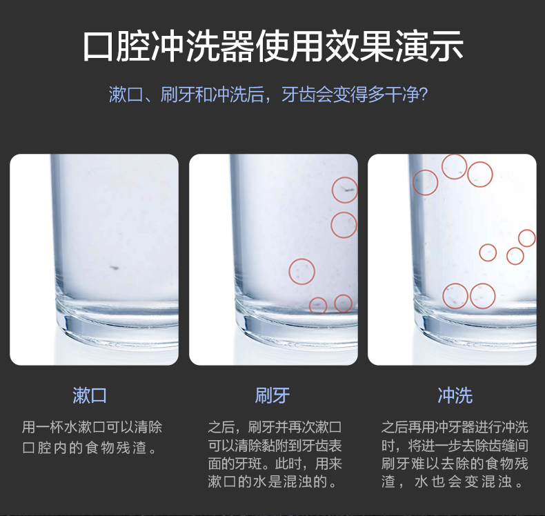 齿间模式:间歇性水流集中护理齿间,清除齿间残渣。