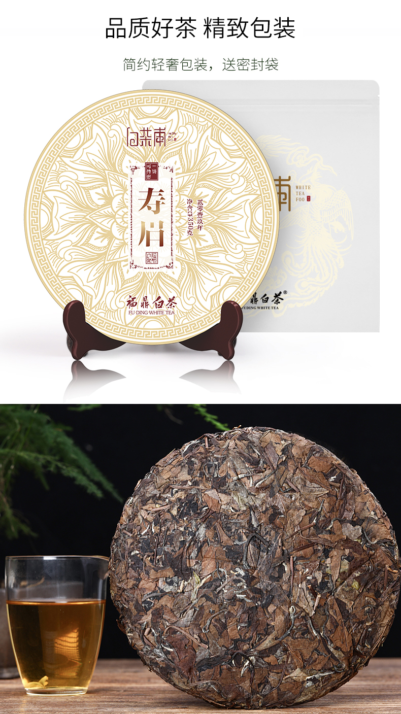 这款白茶甫的福鼎白茶,产自福鼎白茶原产地福鼎市,选用2019年的贡眉为原料。干茶色泽黄褐相间,并且压制紧实,打开茶饼,条索完整,不易断碎;茶汤入口柔顺,醇和甜润;茶底红褐明亮,色泽均匀,叶质柔软,带有甜香