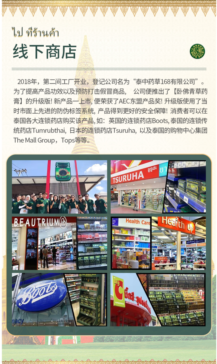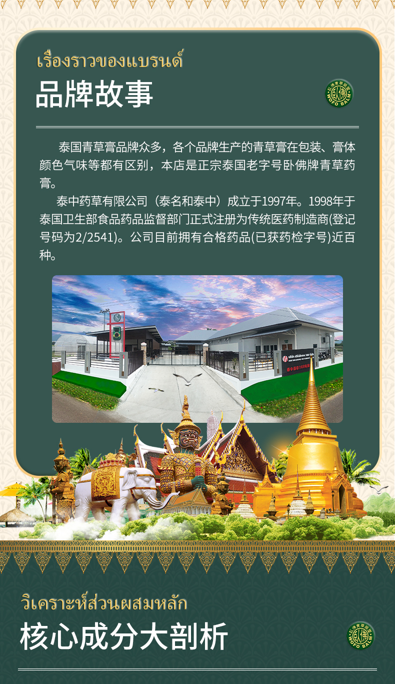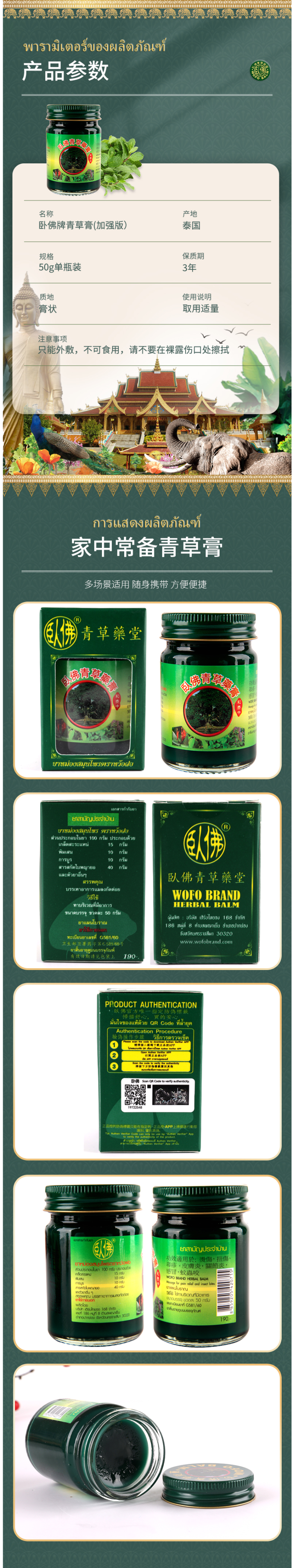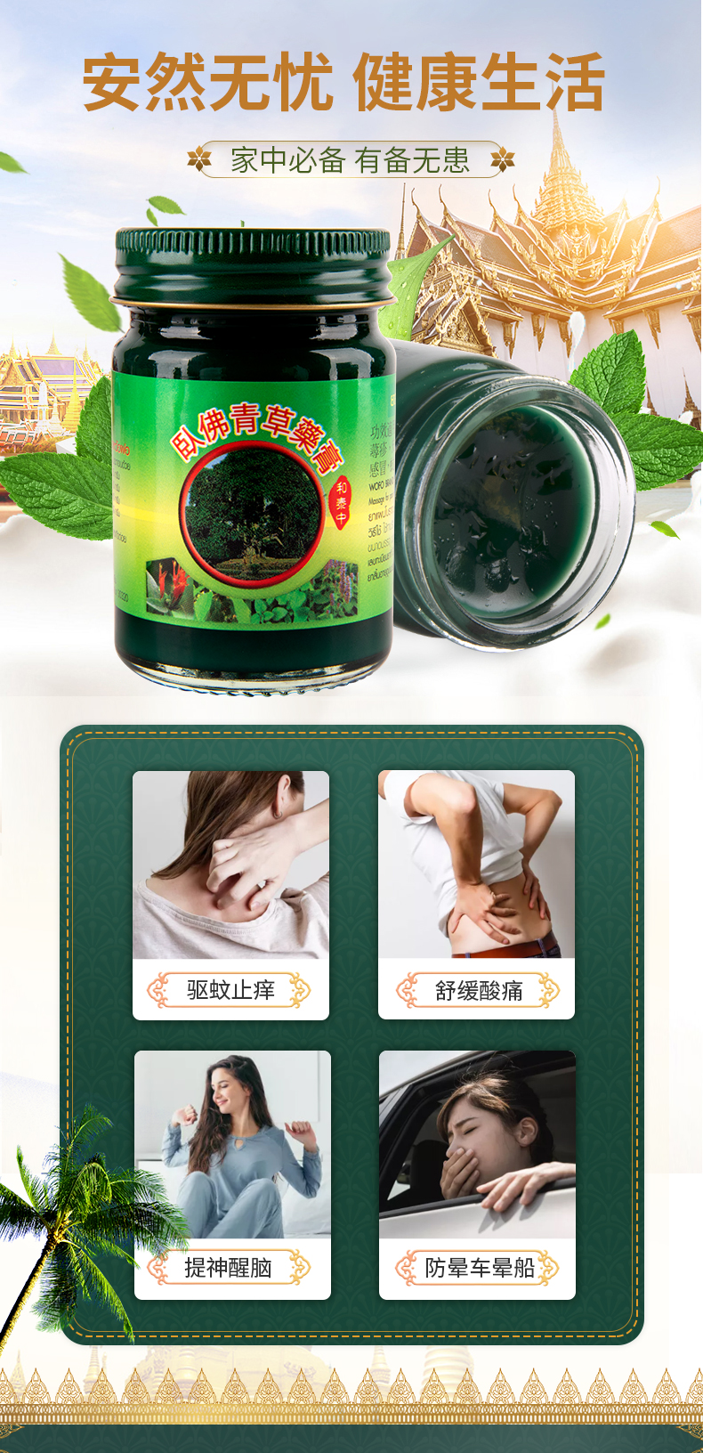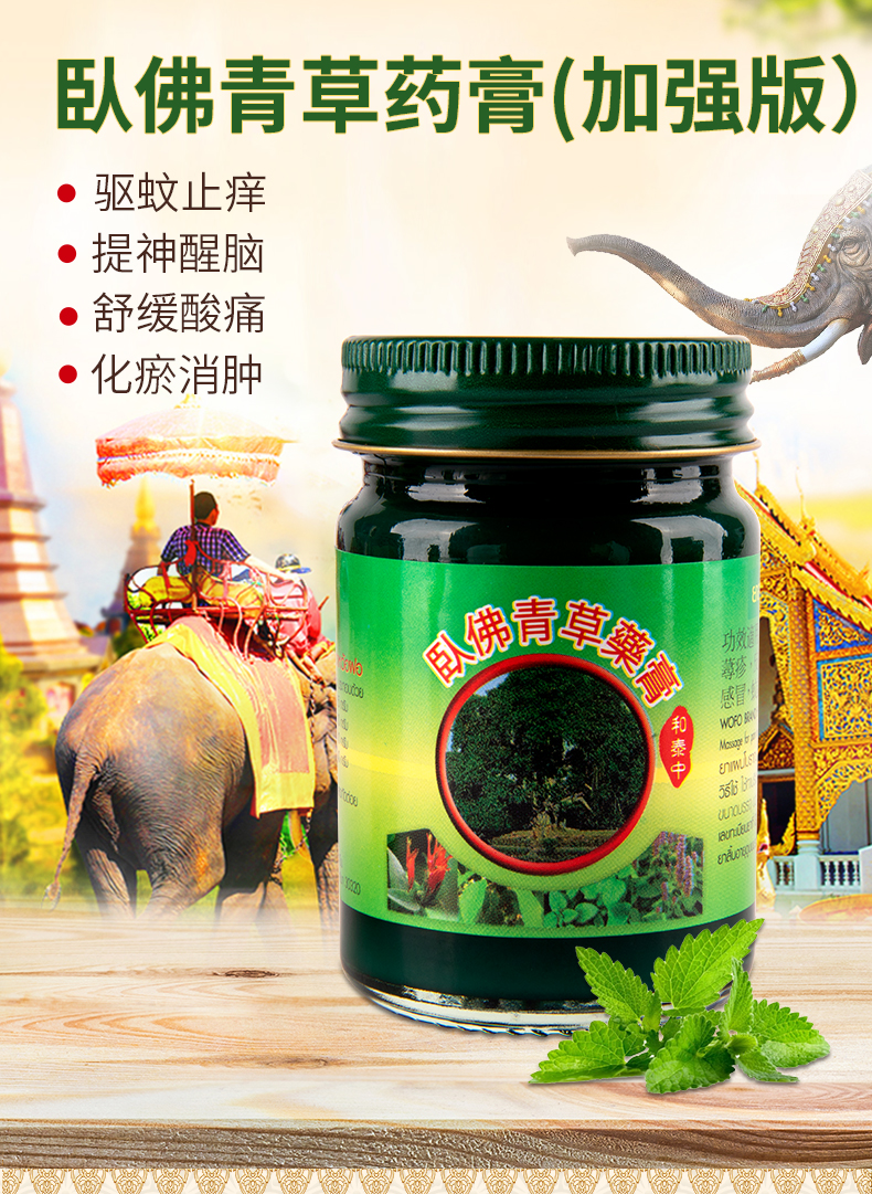 这款卧佛 加强版青草药膏,在泰国是属于万金油般的存在,主要成分是薄荷、樟脑、药草油,能驱蚊止痒、舒缓酸痛、提神醒脑、化瘀消肿、防晕车晕船,气味清香不刺鼻。