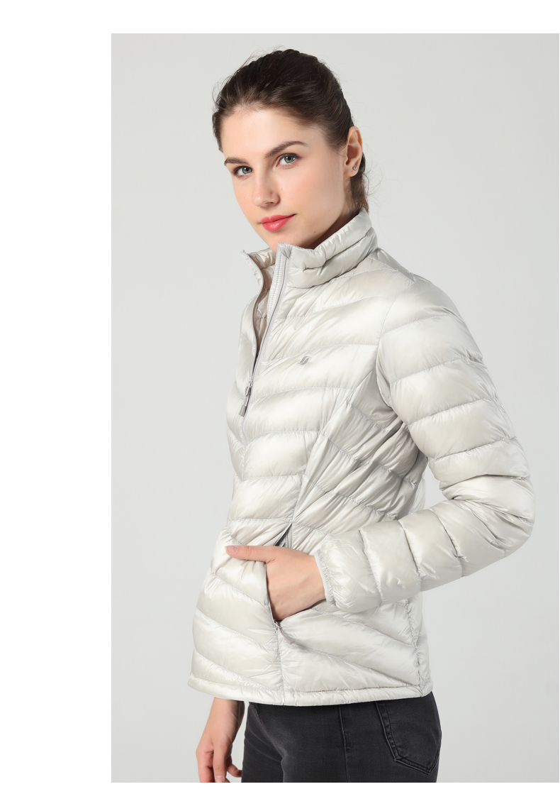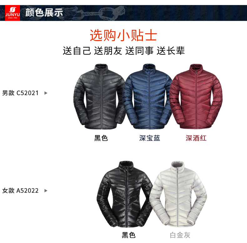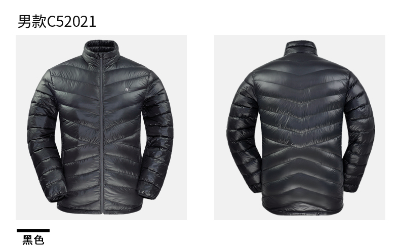充绒:都较为轻薄,女款60克(M码),男款68克(M码),均填充800蓬高蓬松度鹅绒,可以穿的又轻又暖;