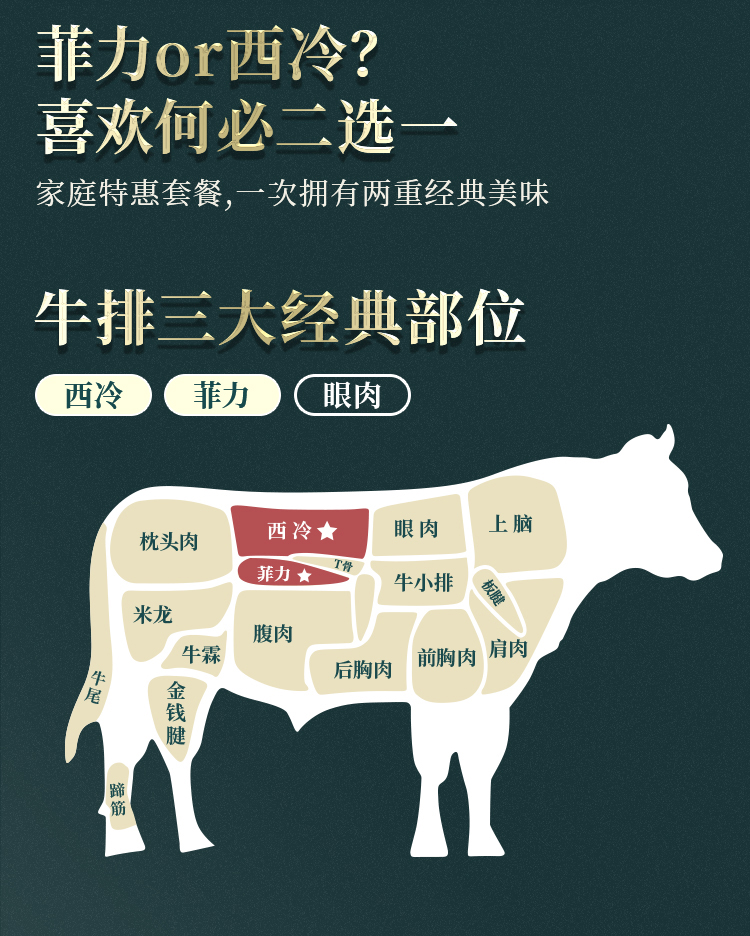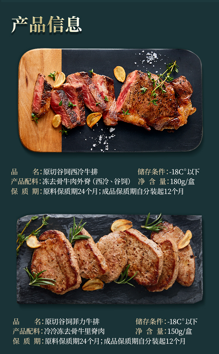 规格是原切谷饲菲力150g*2片+原切谷饲西冷180g*4片,赠鸡米花、黄油、黑椒酱。