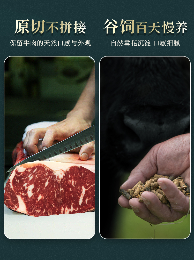 这款烧范儿黑安格斯原切牛排,选自谷饲了200天(达到美国分级标准Choice级别)黑安格斯牛,原切不拼接,自然雪花纹路,口感细腻。