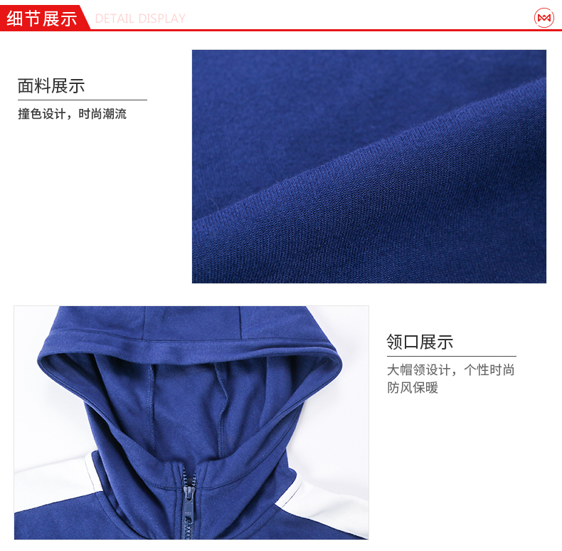 在款式上,修身版型,一体连帽,防风保暖。斜门襟设计,使用YKK拉链,易拉耐用,两侧口袋也有拉链,置物安全。袖口和下摆都有罗纹针织,贴身防止风倒灌。