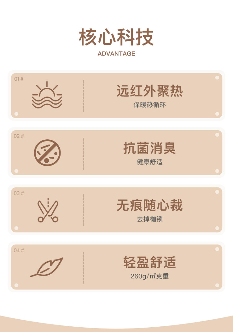 双面磨绒~,康银盾AAA级抗菌面料,真正做到水洗50次依然长效抗菌~!!260g双面磨毛,超级暖和,赠运费险领券链接点此