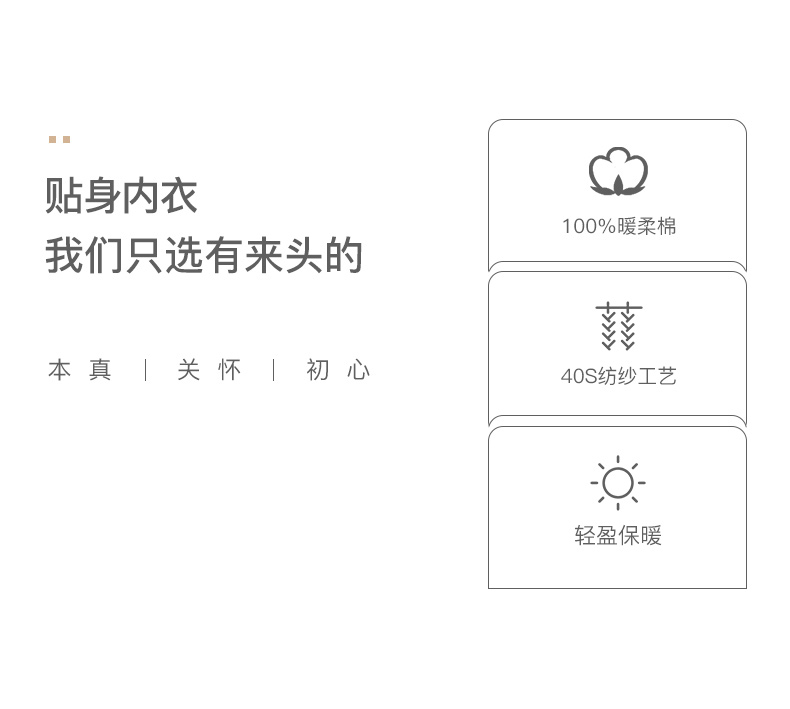 这款秋衣套装,采用100%纯棉40支纺纱面料,180克重薄厚适中,柔软亲肤,不掉毛,手感细腻,透气有弹性,不易起球,活性印染,一片式剪裁,3D人体工程学设计,穿着舒适不易变形,双包滚边圆V领,贴肤罗纹袖口及脚口,罗纹裤腰,无钮扣门襟。