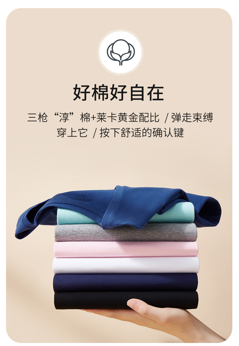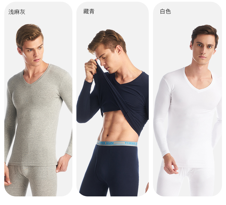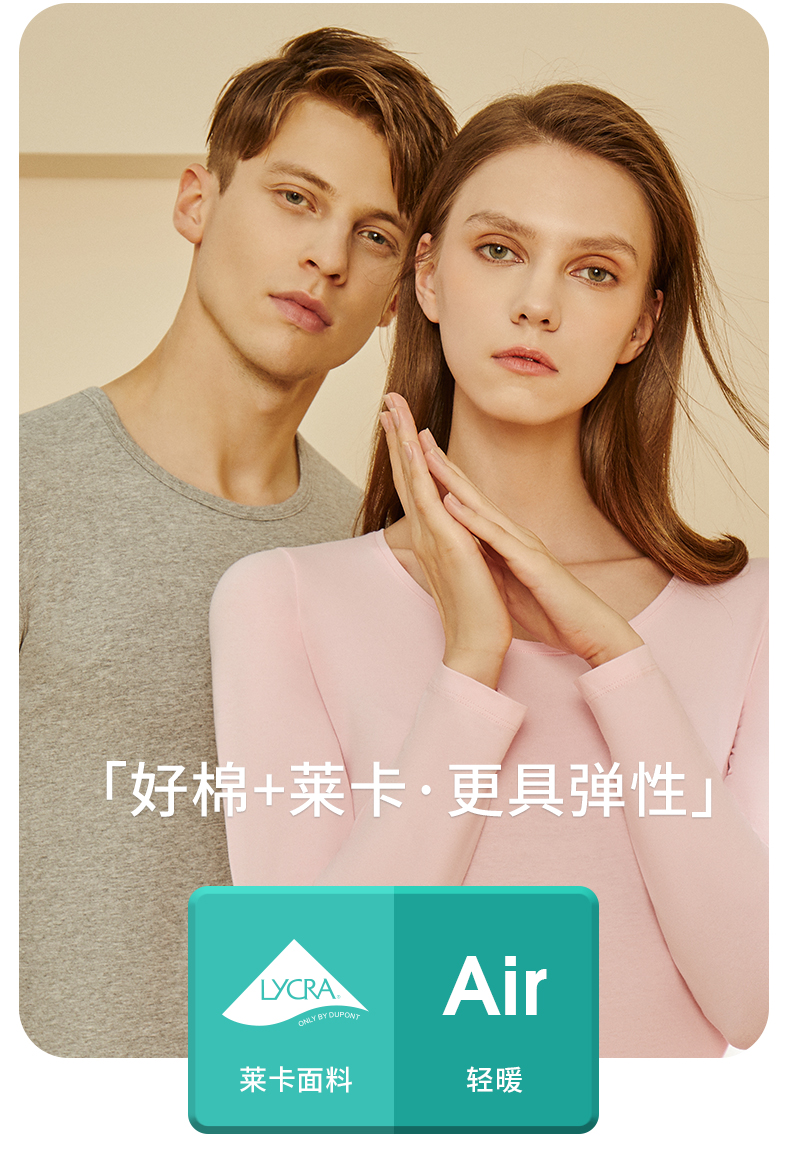 这款三枪 男女秋衣秋裤套装,选用90%棉+10%弹力莱卡混纺制成, 拥有棉质品的特性,但是弹力更好,上身更舒适不束身。
