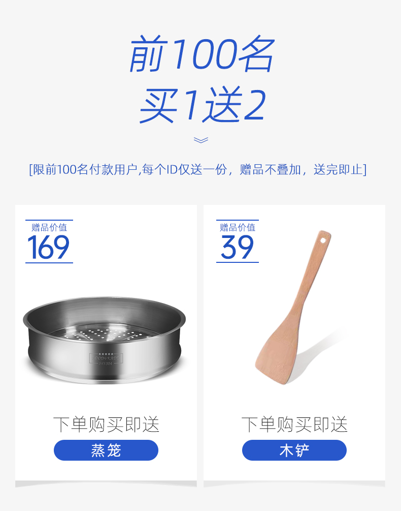 =254.9元 到手,第二款此价,赠蒸笼+木铲,1年粘锅包退换。