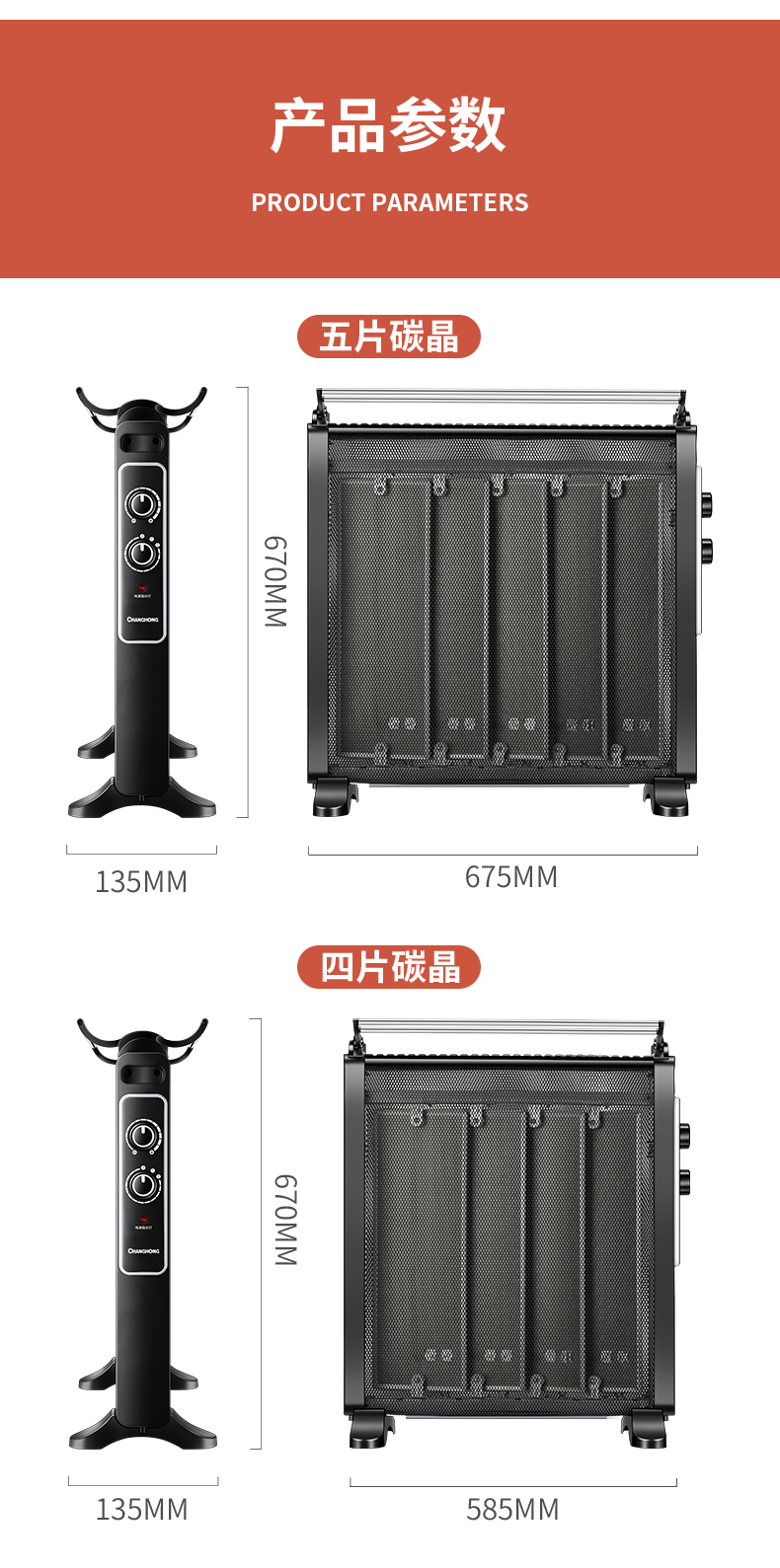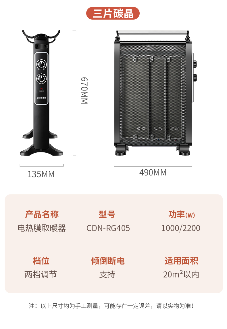 天猫长虹朗森专卖店159元,可领30元优惠券,实付129元到手,第一款大膜单片此价,1000/2000w2档可调,尺寸710*480*240mm。