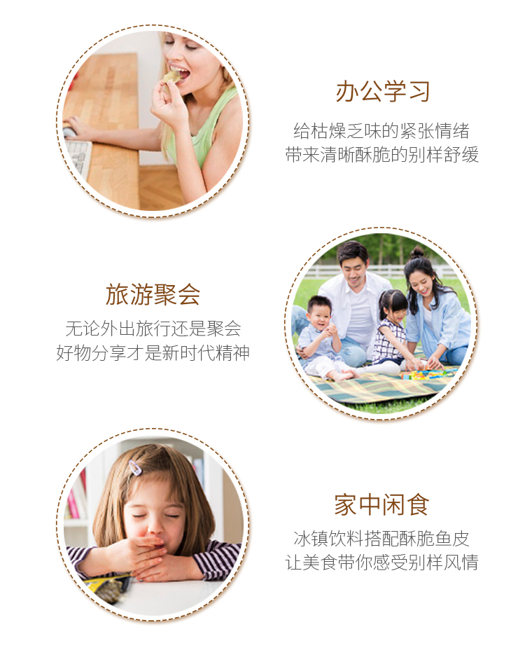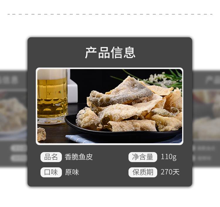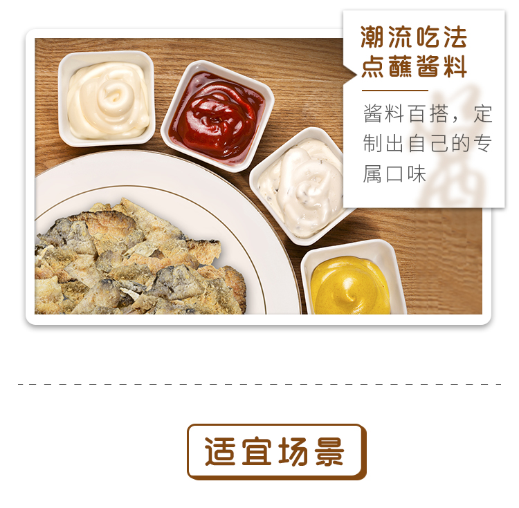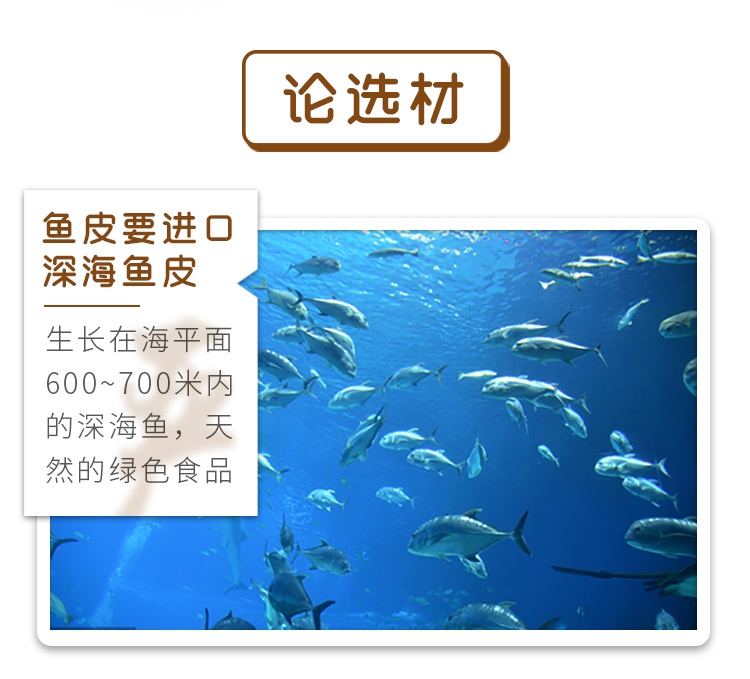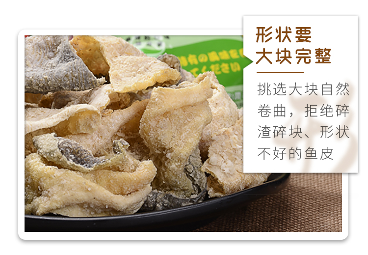 鱼皮含有多种微量氨基酸和丰富的胶原蛋白,脂肪含量低,被称为“鱼中之骨”、“肤中之肤”。这款润志 矶烧鱼皮,精选30~40cm的新鲜深海鱼为原料,运用现代食品加工技术剥离鱼皮鱼肉,在保留胶原蛋白层的同时又保留鱼皮原有形状和营养成份,营养健康低脂,食用更放心。