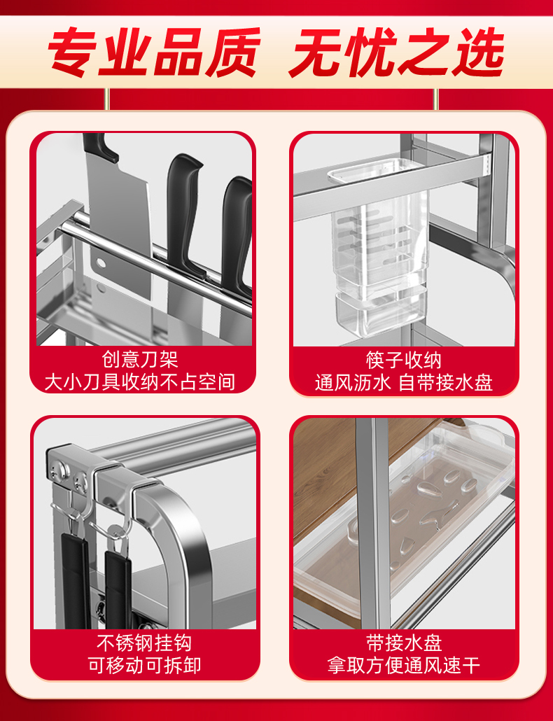 美之高厨房置物架,小空间扩容高手,大容量满足厨房收纳,防水防锈、稳固摆放,承重力强,居家必备!
