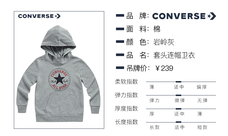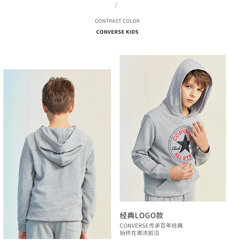 这款 儿童针织连帽卫衣,时尚百搭款式合体版型;精选优质棉涤面料,面料亲肤透气,内里加绒设计,穿着保暖舒适,下摆袖口螺纹贴边,内里缝合处有保护缝线,做工细致。运动自如不勒身。胸口“ALL STAR”经典印花醒目吸睛,彰显品牌质感。
