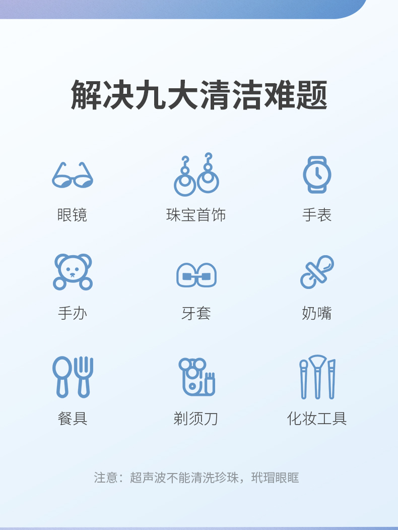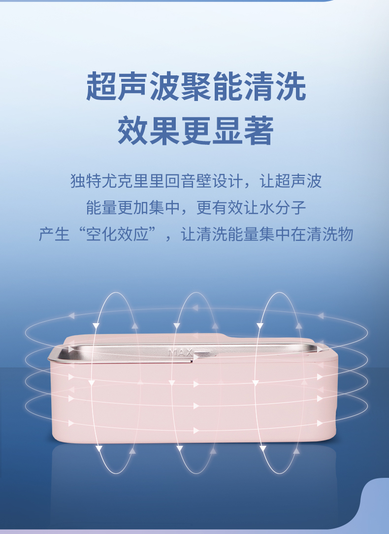 48kHz波频 ,GT-AIR声波技术,只清洗不伤物。多色可选,各种小物件都可以清洗,特别是隐形眼镜,清洗后佩戴感如新。