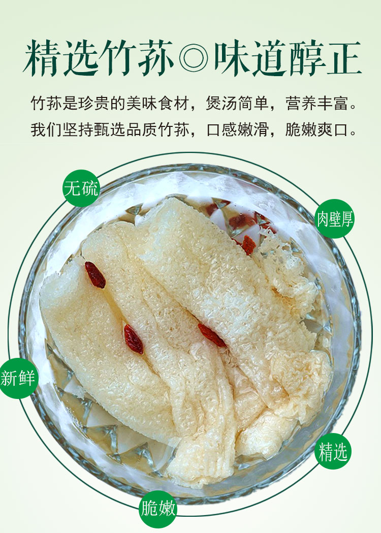 这款益禄寿无硫熏古田竹荪干货,产地是福建古田,是20年现摘新货,选用优质新鲜竹荪为原料,经4小时的慢火烘干,不用硫熏,使竹荪呈自然的淡黄色,同时完美的锁住营养精华,最后是8比1的制干比例。