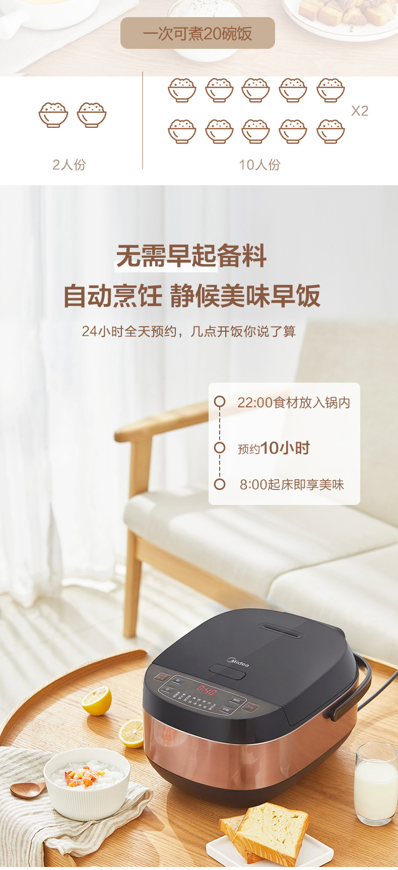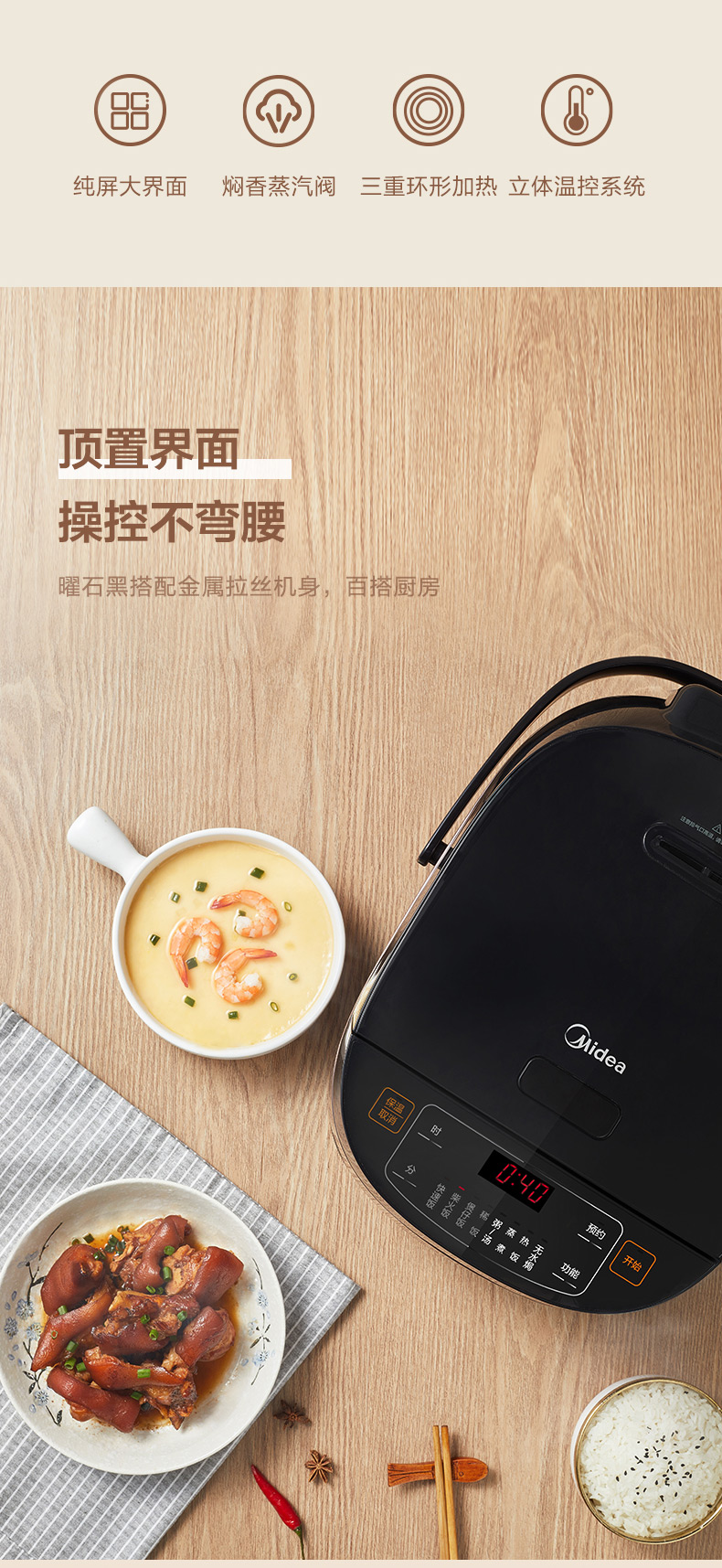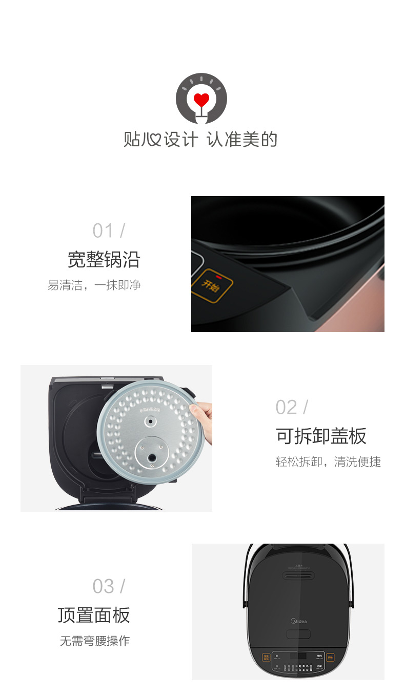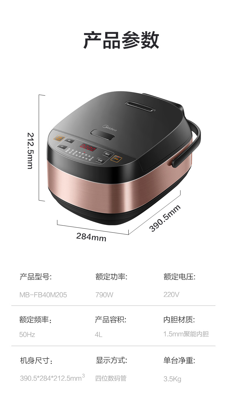 这款美的 MB-FB40M205 多功能智能电饭煲,300pa微压焖饭,锁住米饭原香蒸汽,让米饭更香弹饱满,还原柴火饭的喷香味道。