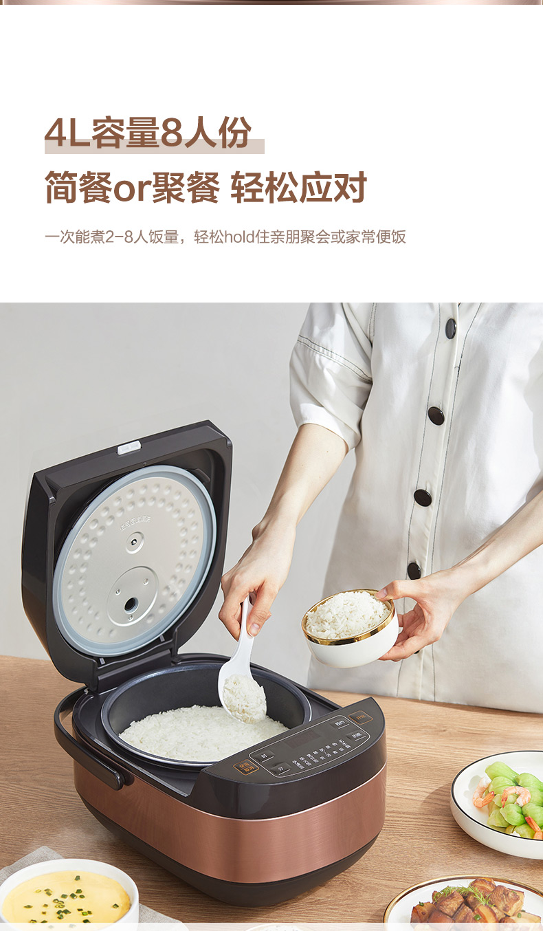天猫美的好客专卖店,第二款203元,可领20元优惠券,实付183元到手,4L容量的一次能煮9~10碗饭,适合3-8口人。