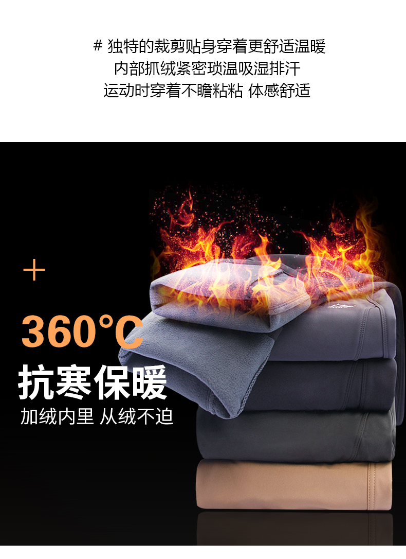 内里是加厚摇粒绒保暖设计,在保证保暖的同时,不起球不起静电。修身合体版型,上身不臃肿。面料微弹不紧绷,蹲坐抬腿没有舒服感,能满足运动需要。